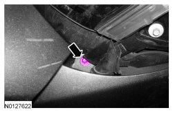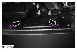 Using a plastic trim removal tool, carefully remove the cowl panel grille filler panel beginning at the rear and working forward.