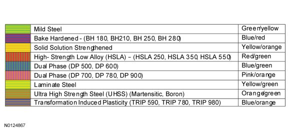 NOTE: See the Ford Recommended Steel Repairability Matrix. REFER to SPECIFICATIONS for correct welding requirements.