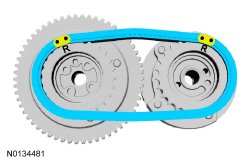 - There is 48 links in between the RH (Right Hand) intake VCT (Variable Camshaft Timing) assembly colored link (1) and the LH (Left Hand) intake VCT (Variable Camshaft Timing) assembly colored link (2).