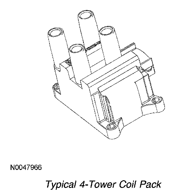 When the coil is fired by the PCM, spark is delivered through the matched pair towers to their respective spark plugs. The spark plugs are fired simultaneously and are paired so that as one fires on the compression stroke, the other spark plug fires on the exhaust stroke. The next time the coil is fired, the situation is reversed. The next pair of spark plugs fire according to the engine firing order.