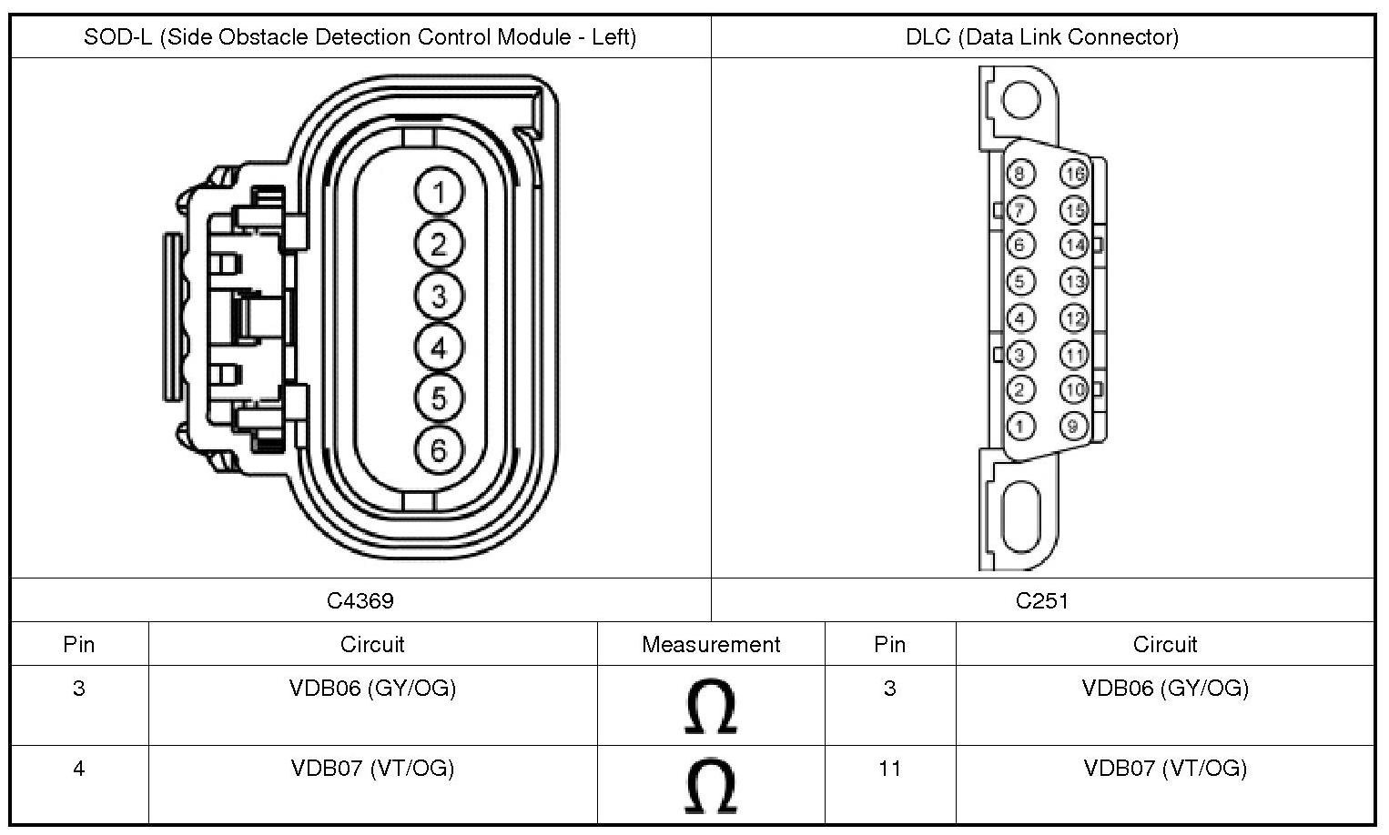 2. Disconnect and inspect the SOD-L (Side Obstacle Detection Control Module - Left) connector.