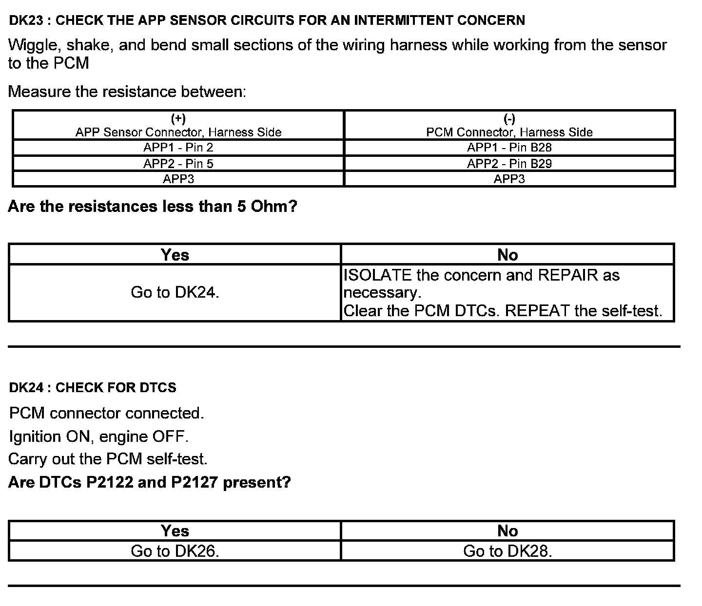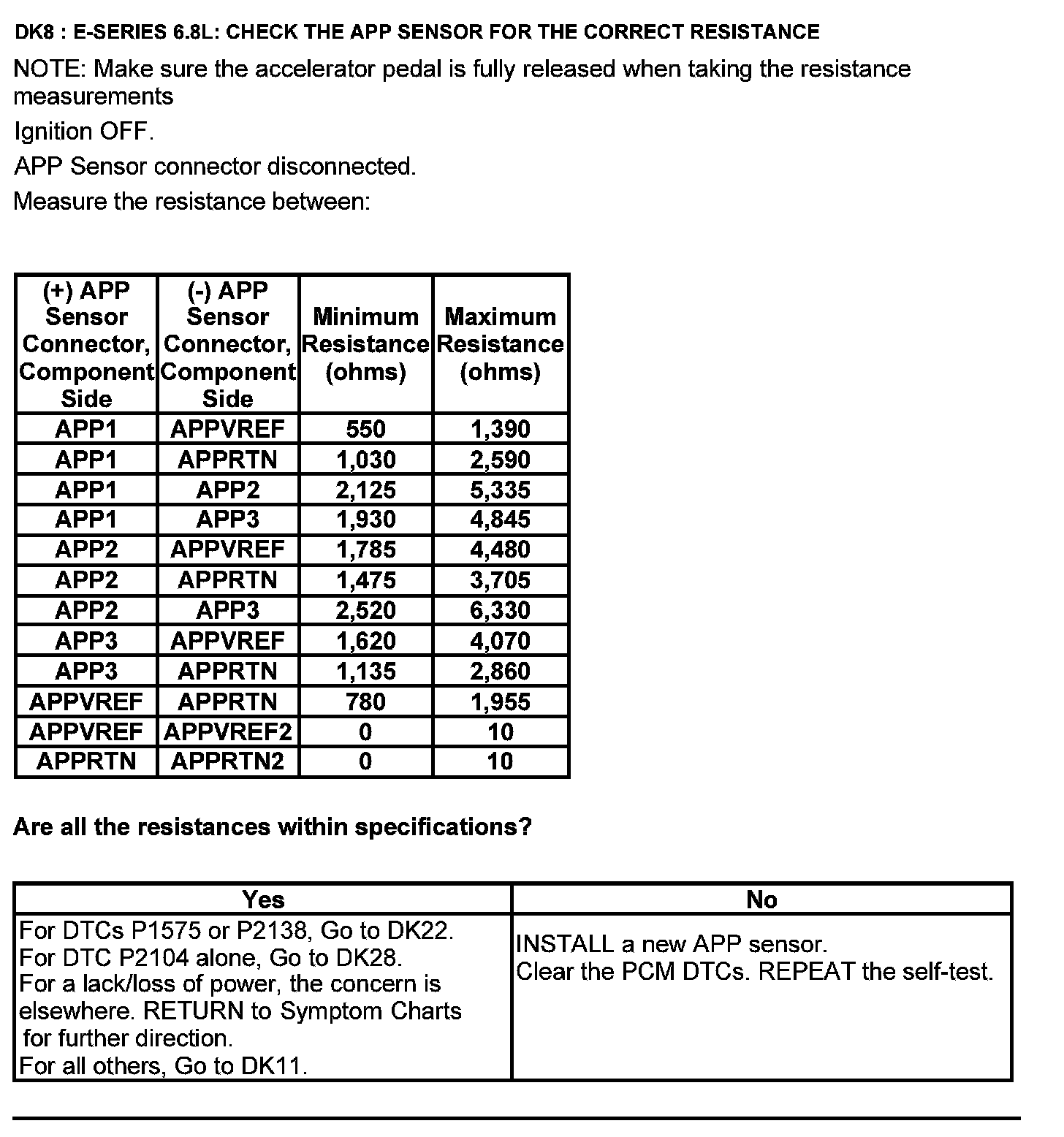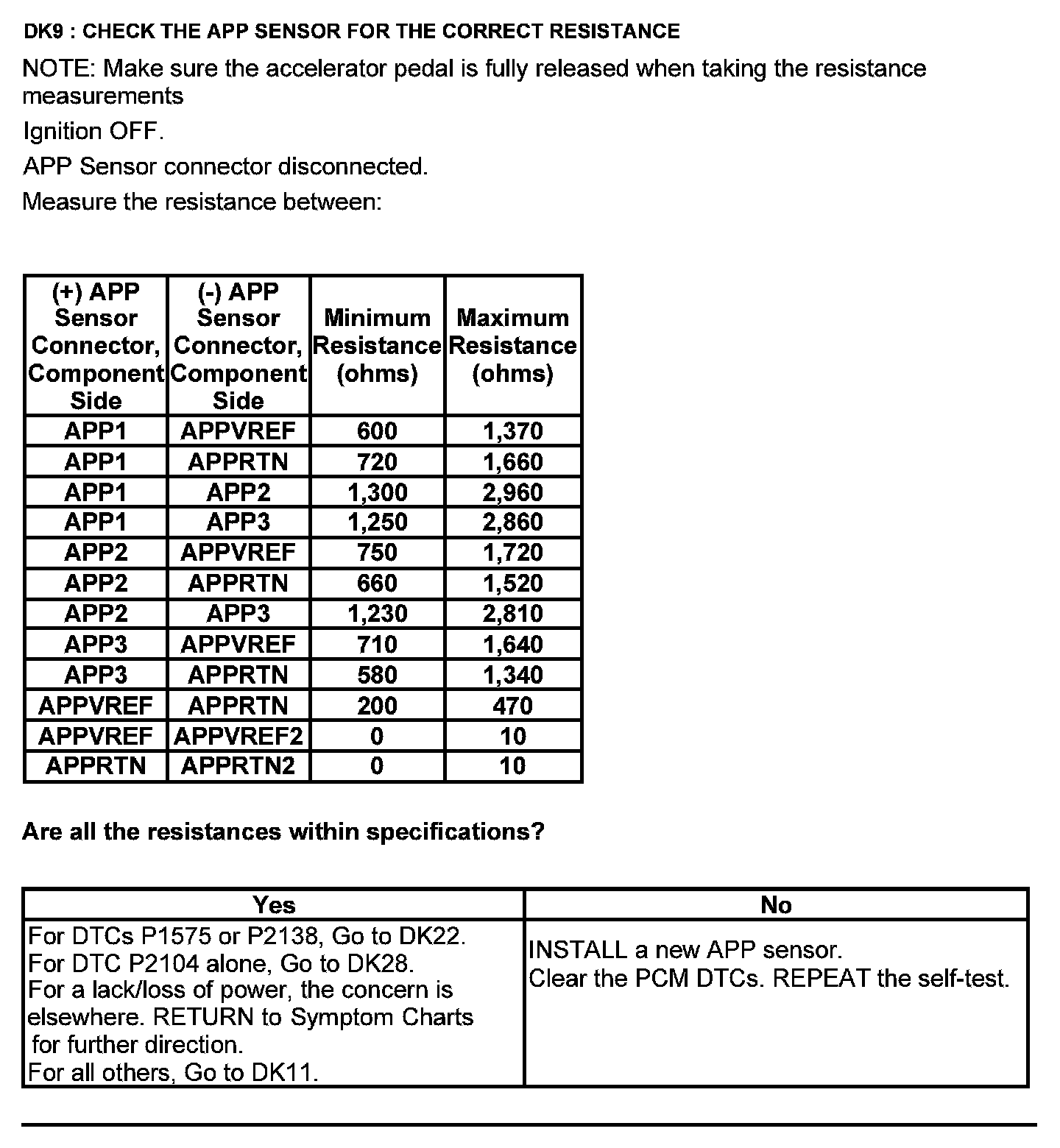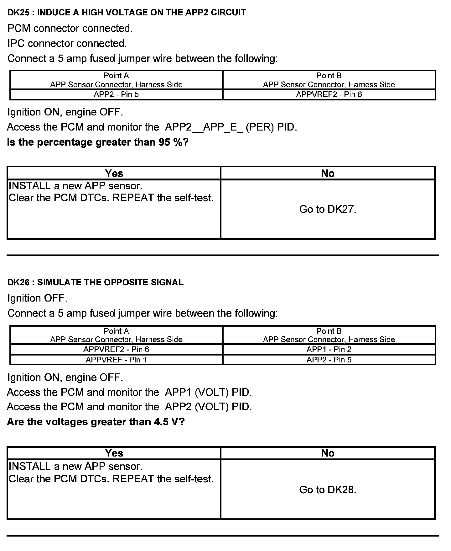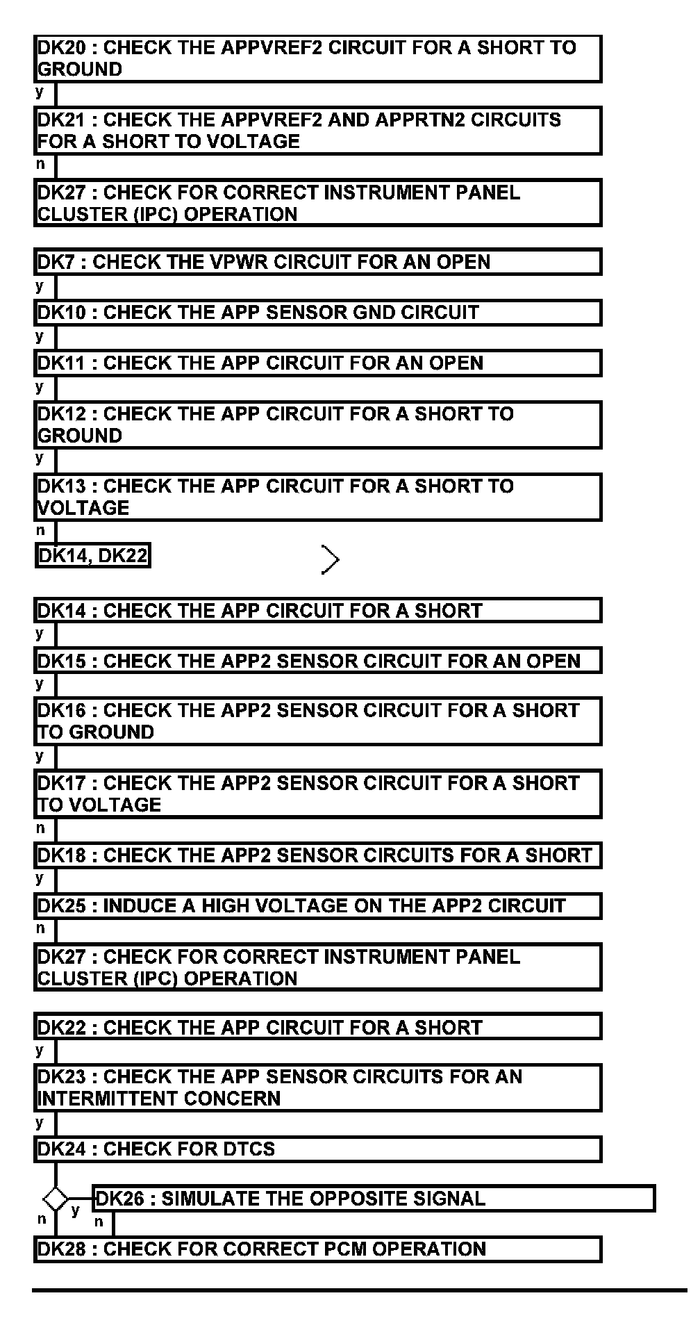 Home >> Ford >> 2012 >> Explorer FWD V6-3.5L >> Repair and Diagnosis >> Powertrain Management >> Computers and Control Systems >> Testing and Inspection >> Pinpoint Tests >> Test DK: Accelerator Pedal Position (APP) Sensor