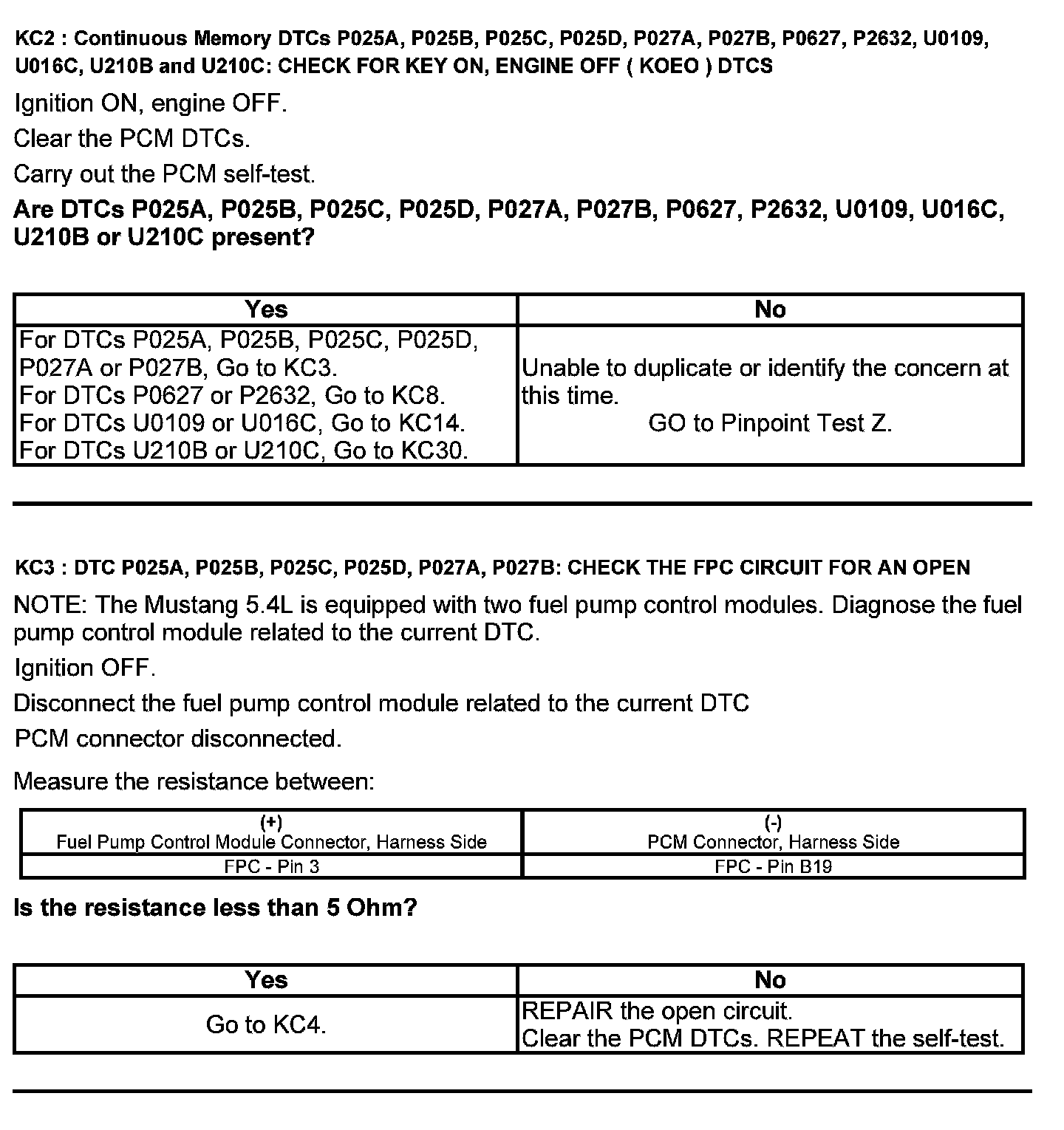 Test KC: Fuel Pump Control Module