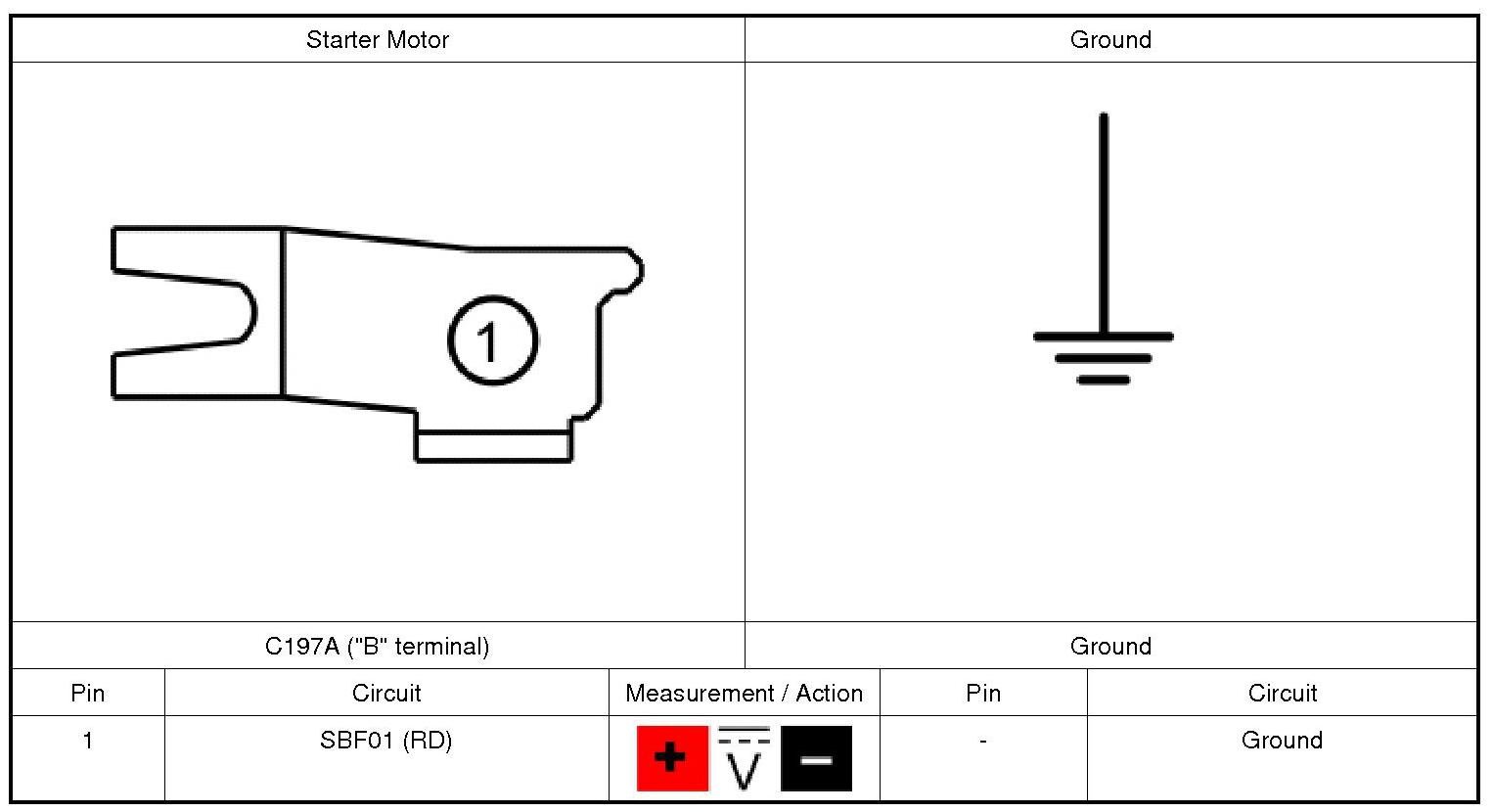 3. With the gear selector in PARK, while holding the key in the START position, measure: