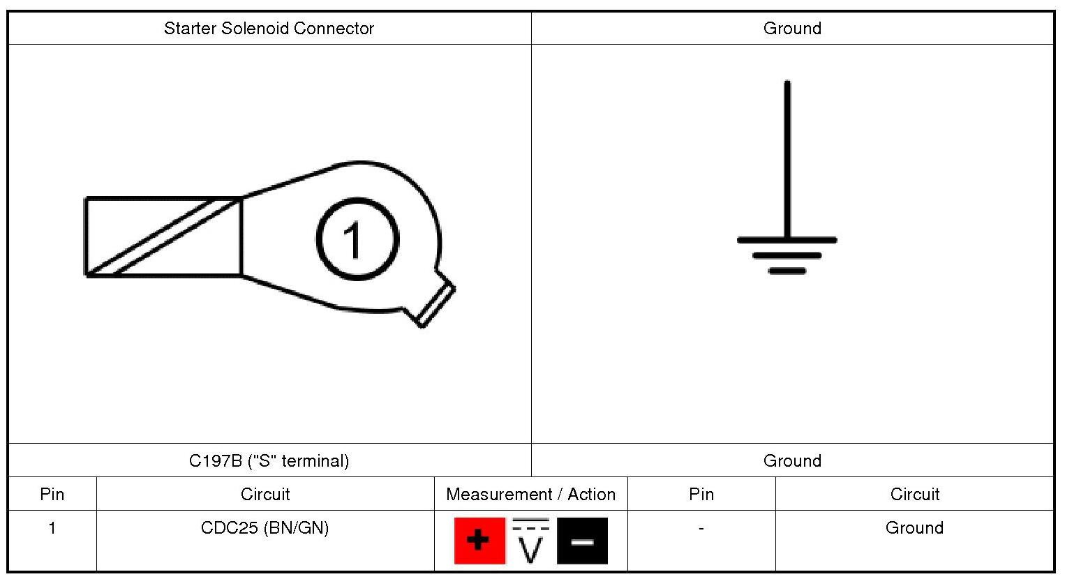 2. Disconnect: Starter Solenoid C197B ("S" terminal).