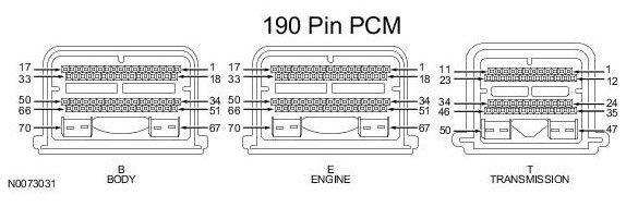 Powertrain Control Module (PCM) Connector - For PCM connector views or reference values, refer to Reference Values.