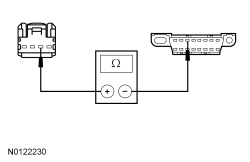 - Measure the resistance between the FCIM (Front Controls Interface Module) C2402-3, circuit VDB07 (VT/OG), harness side and the DLC (Data Link Connector) C251-11, circuit VDB07 (VT/OG), harness side.