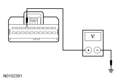 - Measure the voltage between the ILCM (Interior Lighting Control Module) C3498-7, circuit CBX07 (GN/RD), harness side and ground.