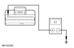 - Measure the resistance between the ILCM (Interior Lighting Control Module) C3498-10, circuit GD908 (BK), harness side and ground.