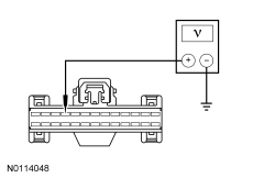- Measure the voltage between the SCCM (Steering Column Control Module) C2414A-10, circuit SBP23 (WH/RD), harness side and ground.