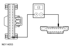 - Measure the resistance between the SCCM (Steering Column Control Module) C2414A-13, circuit GD133 (BK), harness side and ground.