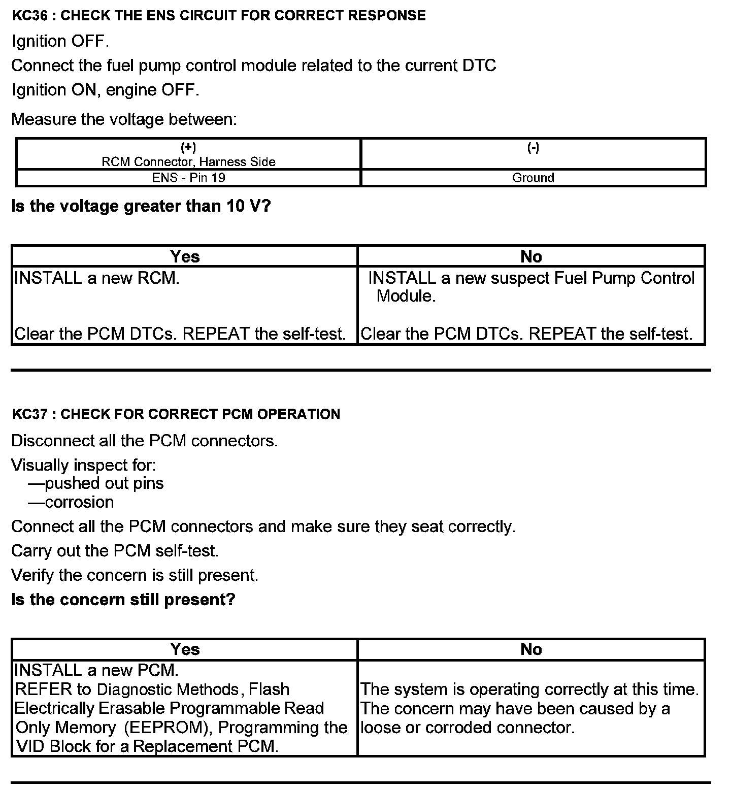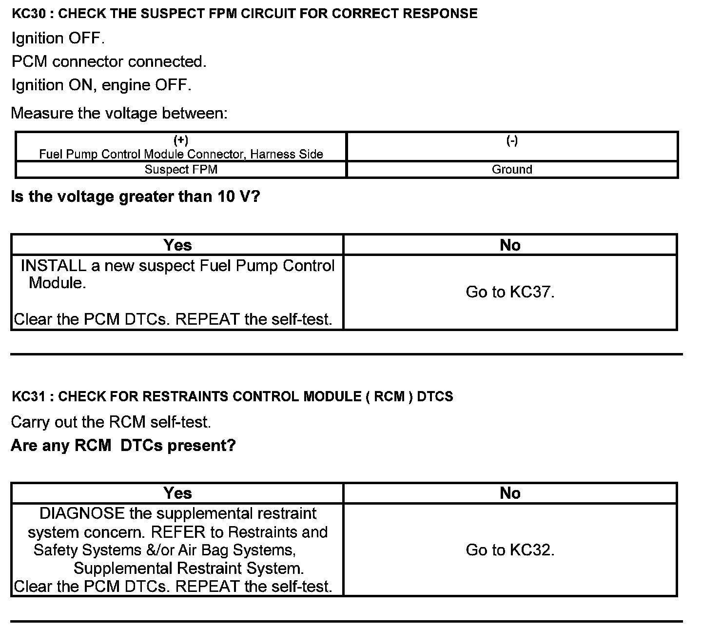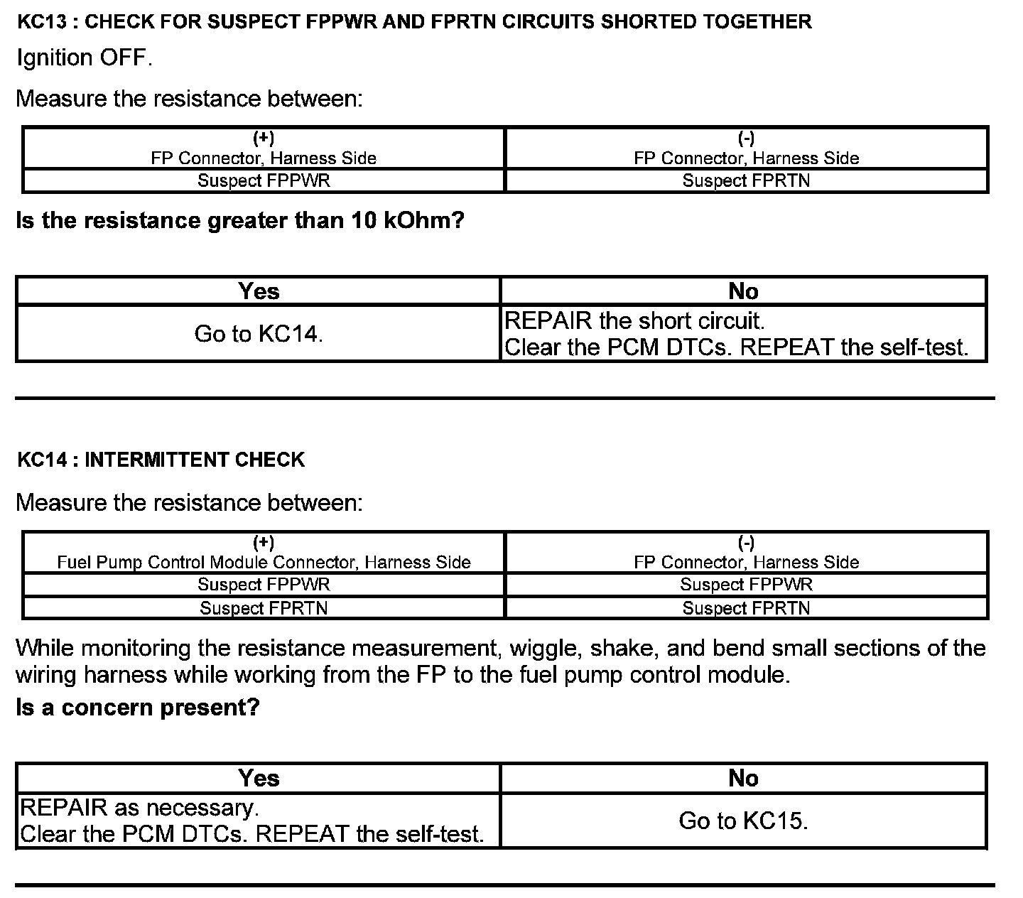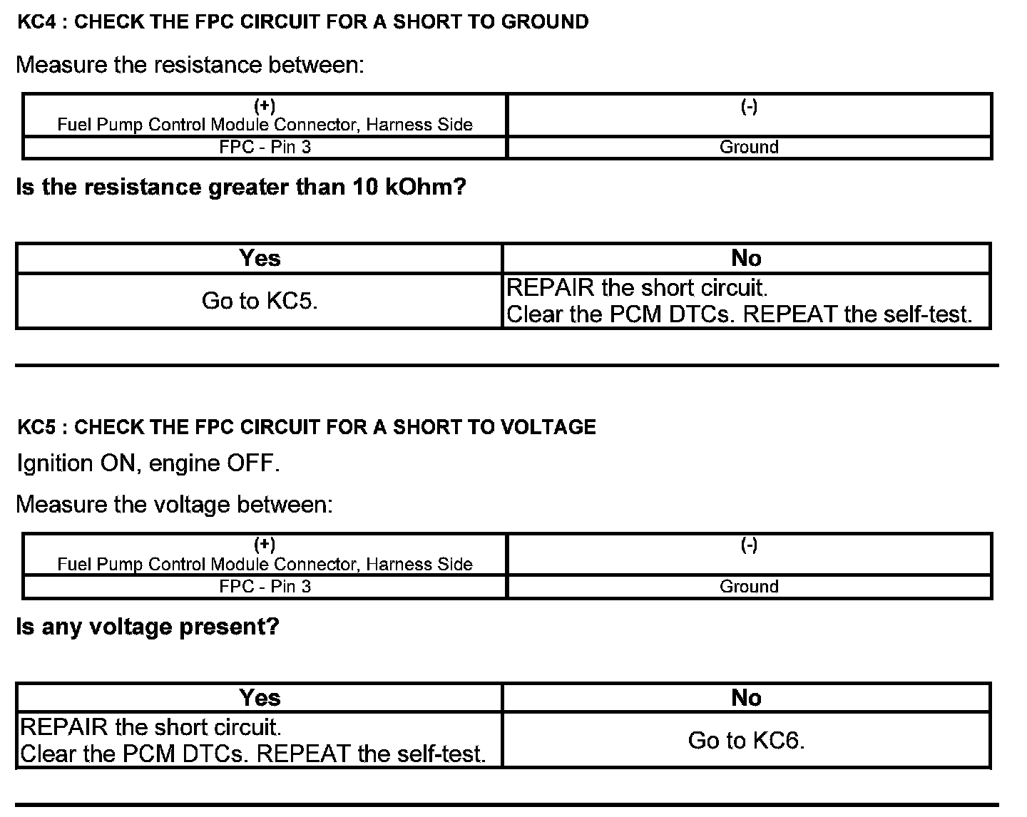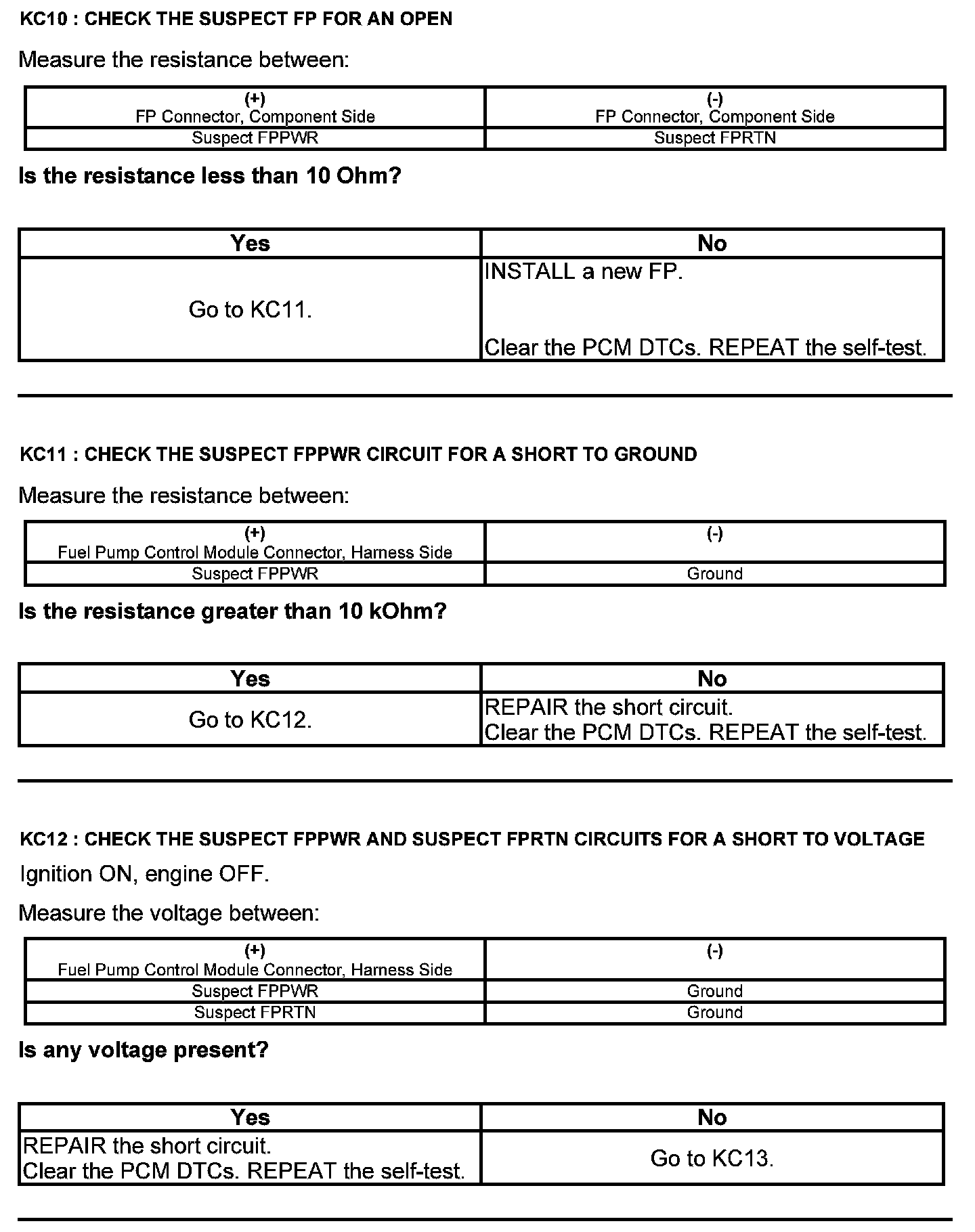 Test KC: Fuel Pump Control Module