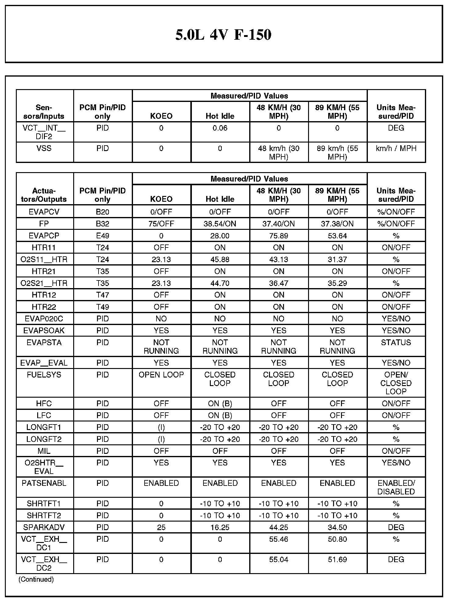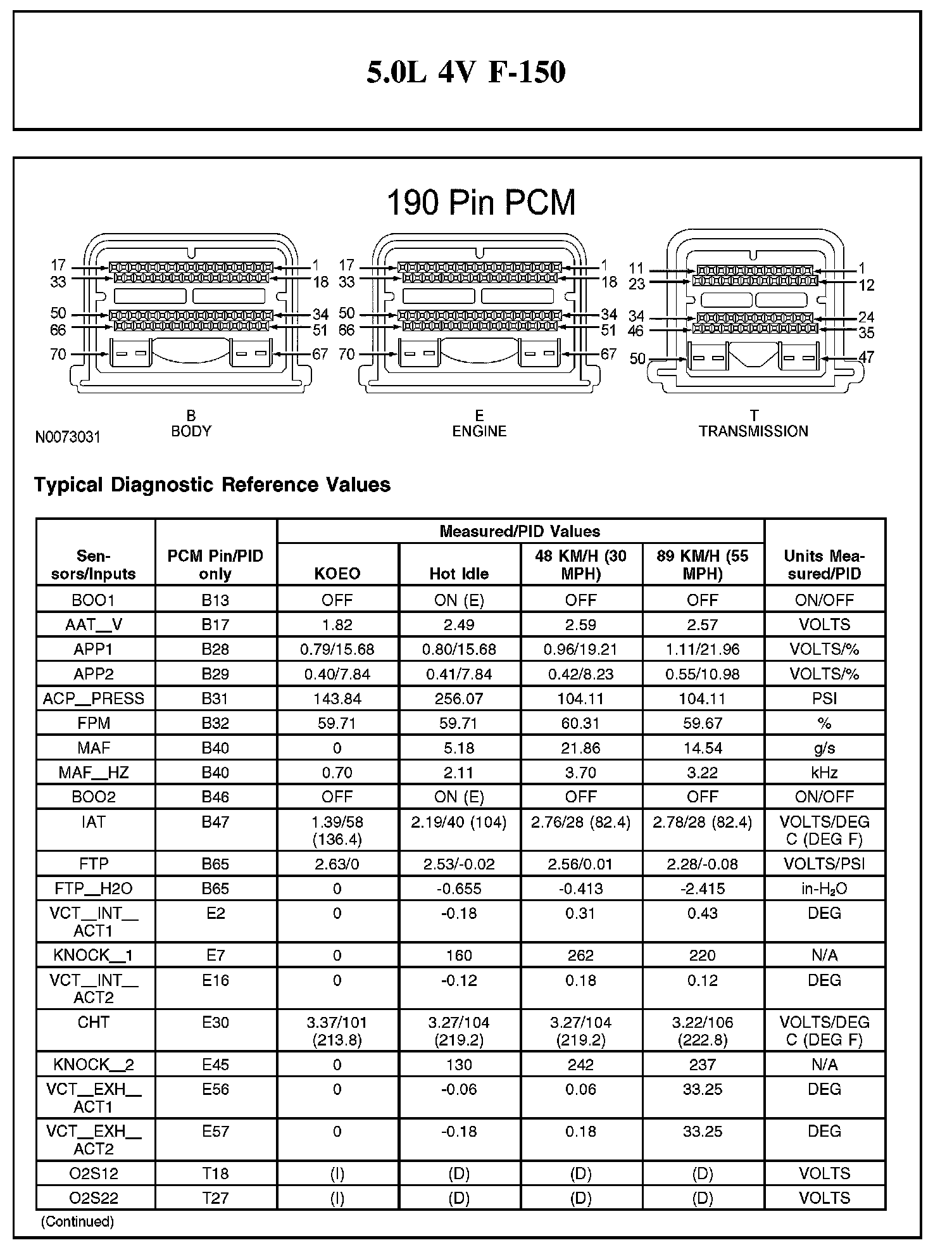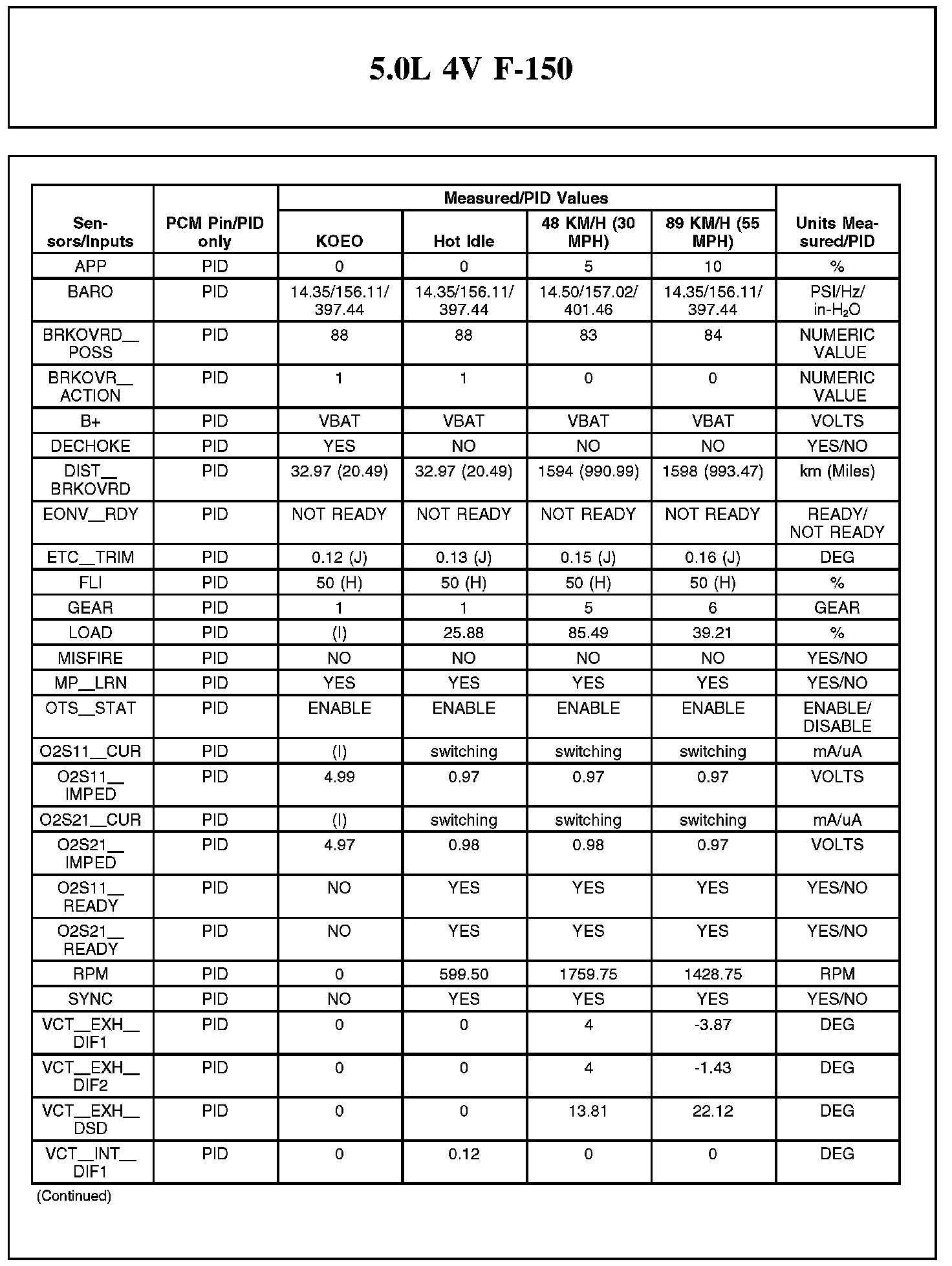 Home >> Ford >> 2012 >> F 150 2WD V8-5.0L >> Repair and Diagnosis >> Powertrain Management >> Computers and Control Systems >> Testing and Inspection >> Scan Tool Testing and Procedures >> Typical Diagnostic Reference Values