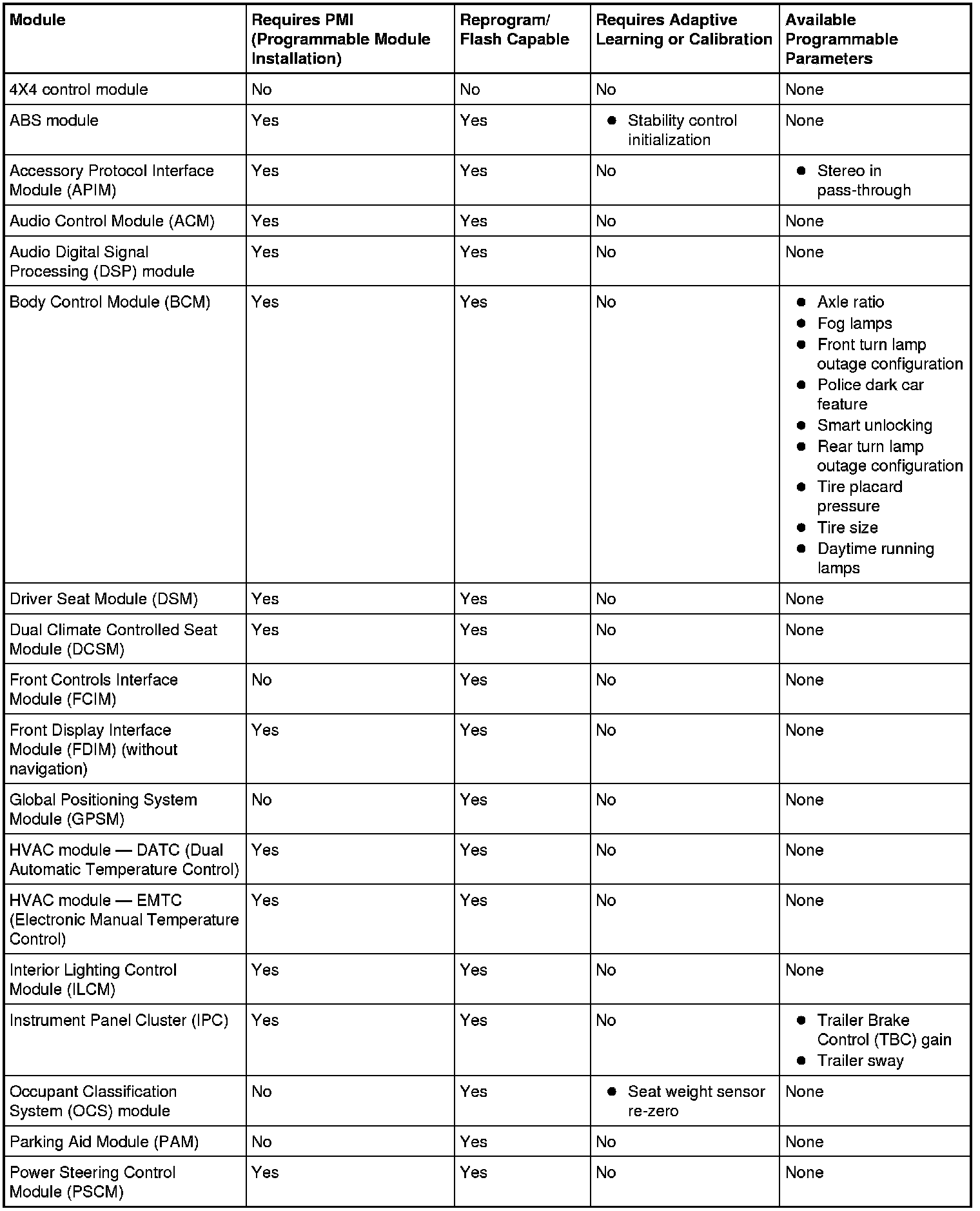 Programmable parameters are customer preference items that may be modified by the dealer via the scan tool, or in some cases, by the customer following a procedure listed in the vehicle Owner's Literature. While many configuration options may exist for a module, only a few of these options are programmable parameters.