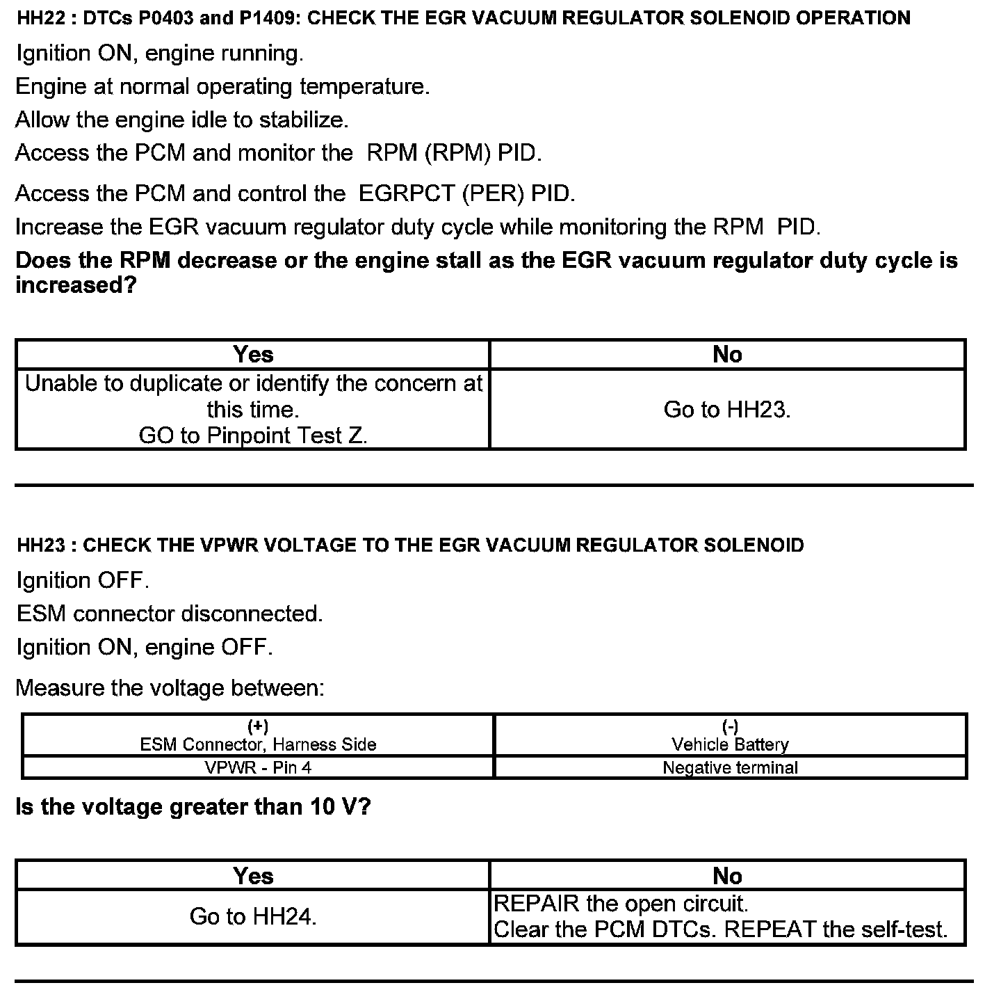 Home >> Ford >> 2012 >> F 150 2WD V8-6.2L >> Repair and Diagnosis >> Powertrain Management >> Computers and Control Systems >> Testing and Inspection >> Pinpoint Tests >> Test HH: Exhaust Gas Recirculation System Module (ESM)