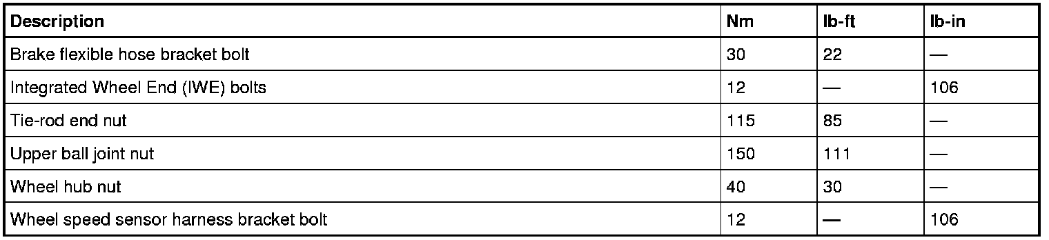 Torque Specifications