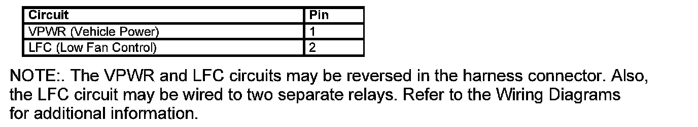 Low Fan Control (LFC) Relay Connector