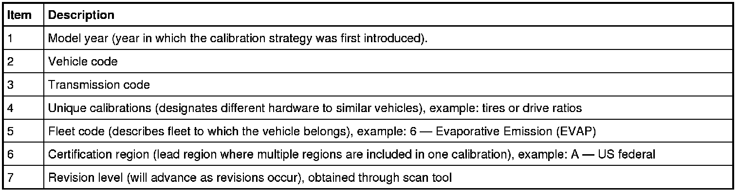 The Emission/Corporate Average Fuel Economy/CO2 Compliance Department is responsible for assigning these calibration numbers. Unique identifications are assigned to cover similar vehicles to differentiate between tires, drive configurations, final drive ratios and other calibration-significant factors.