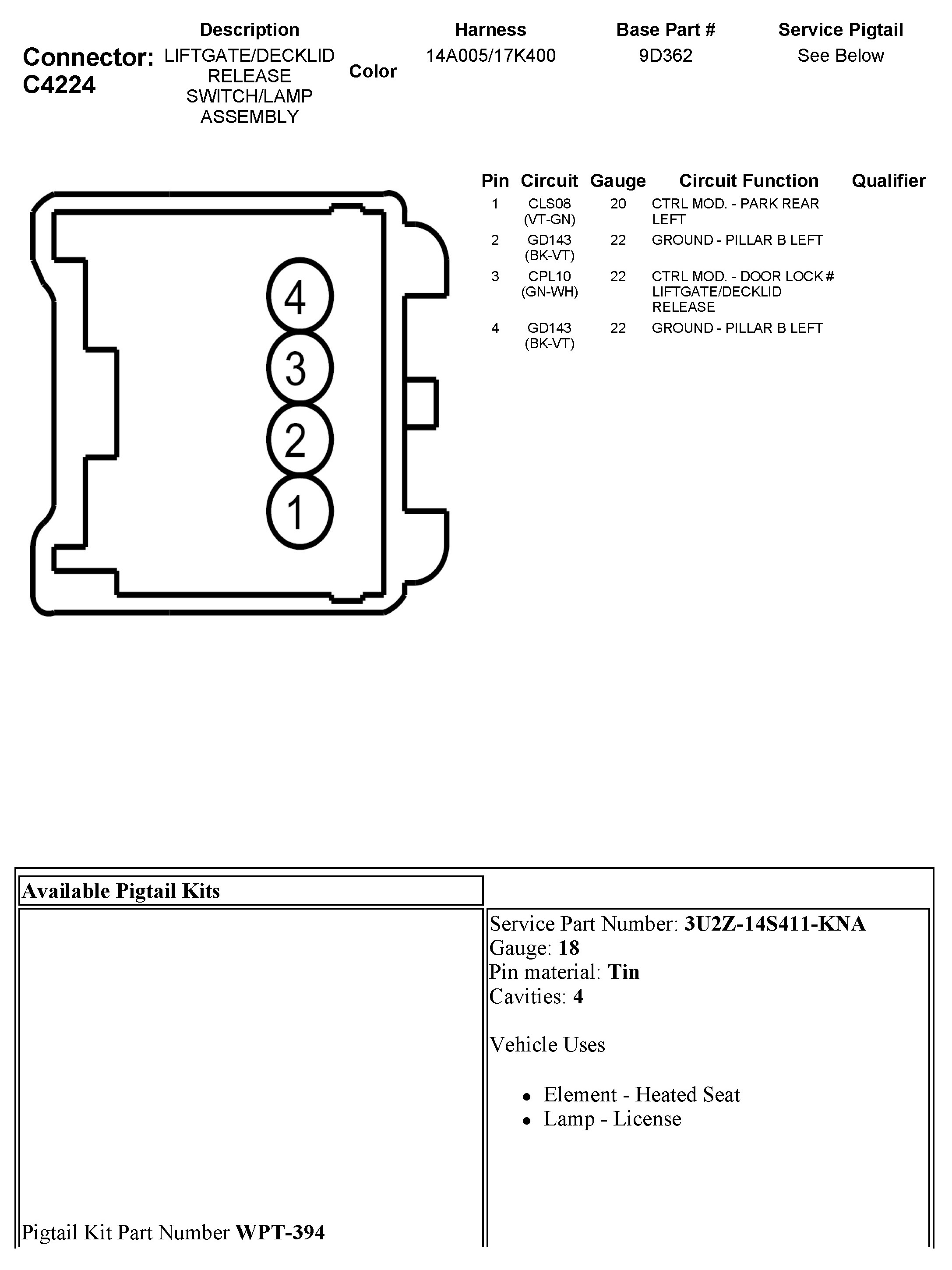 Power Trunk / Liftgate Lock Switch