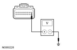 - Measure the voltage between the OCSM (Occupant Classification System Module) C3159-1, circuit CBP04 (VT), harness side and ground.