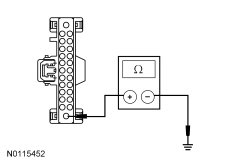 - Measure the resistance between the ACM (Audio Control Module) C240A-13, circuit GD111 (BK/BU), harness side and ground.
