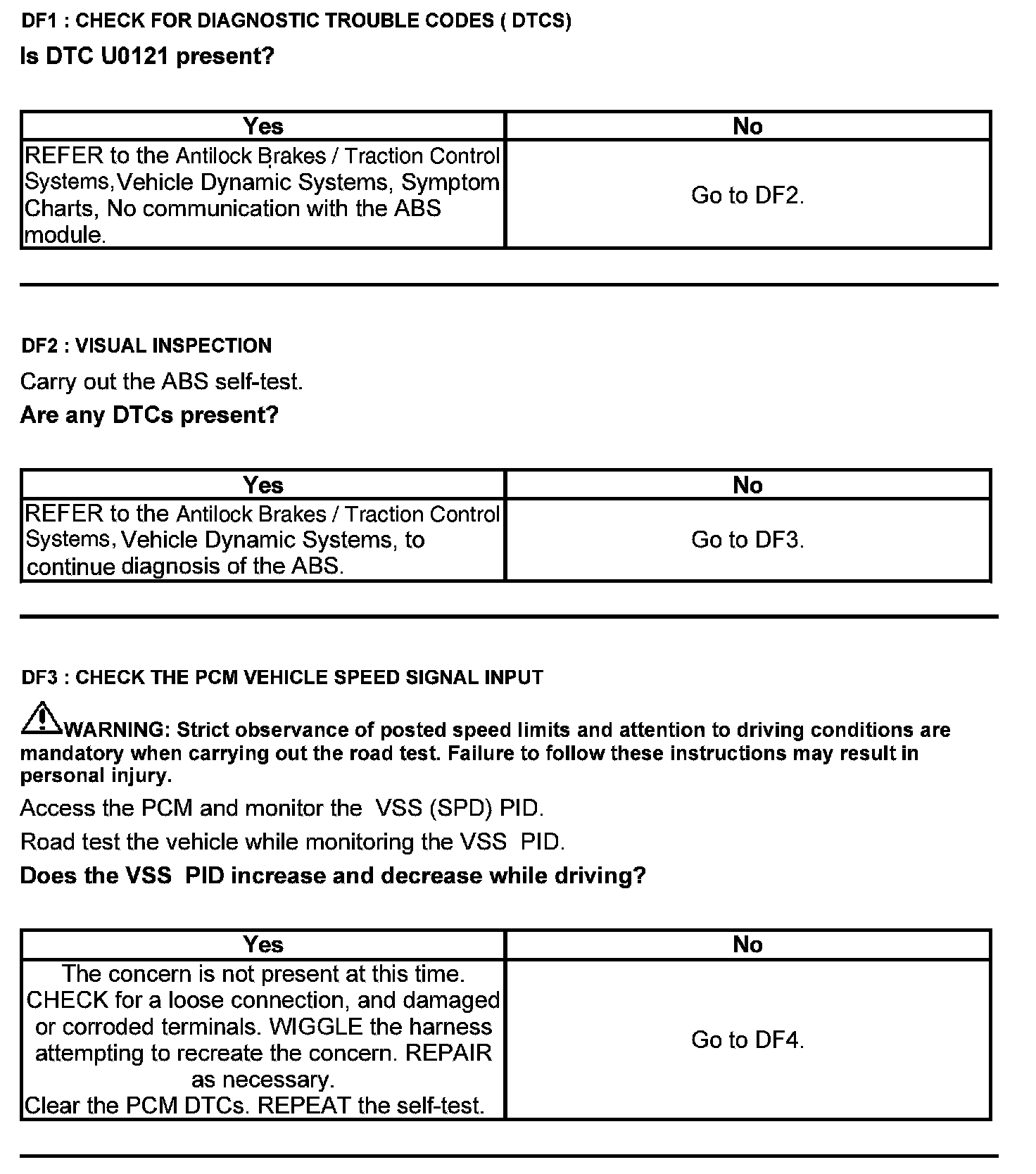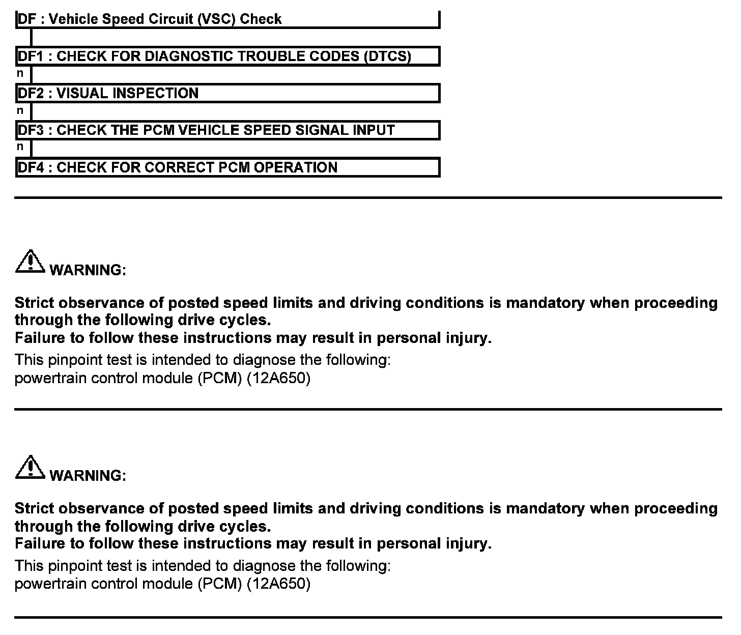 Test DF: Vehicle Speed Circuit (VSC) Check