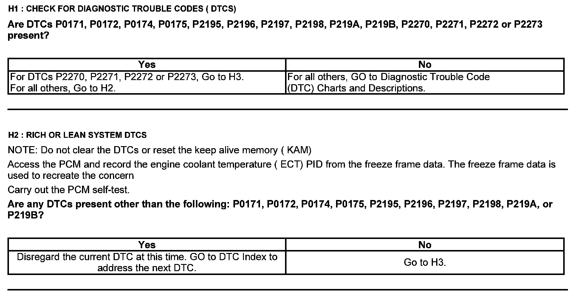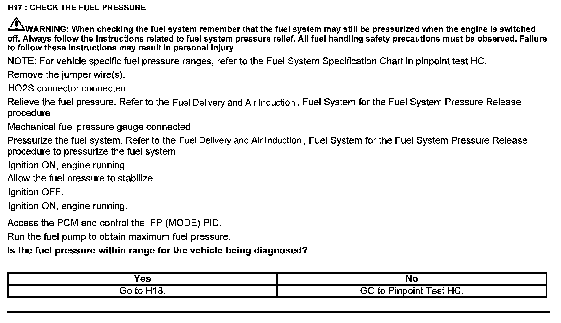 Home >> Ford >> 2012 >> Fiesta L4-1.6L >> Repair and Diagnosis >> Powertrain Management >> Computers and Control Systems >> Testing and Inspection >> Pinpoint Tests >> Test H: Fuel Control