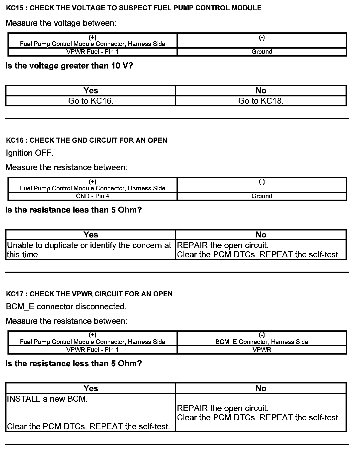 Test KC: Fuel Pump Control Module