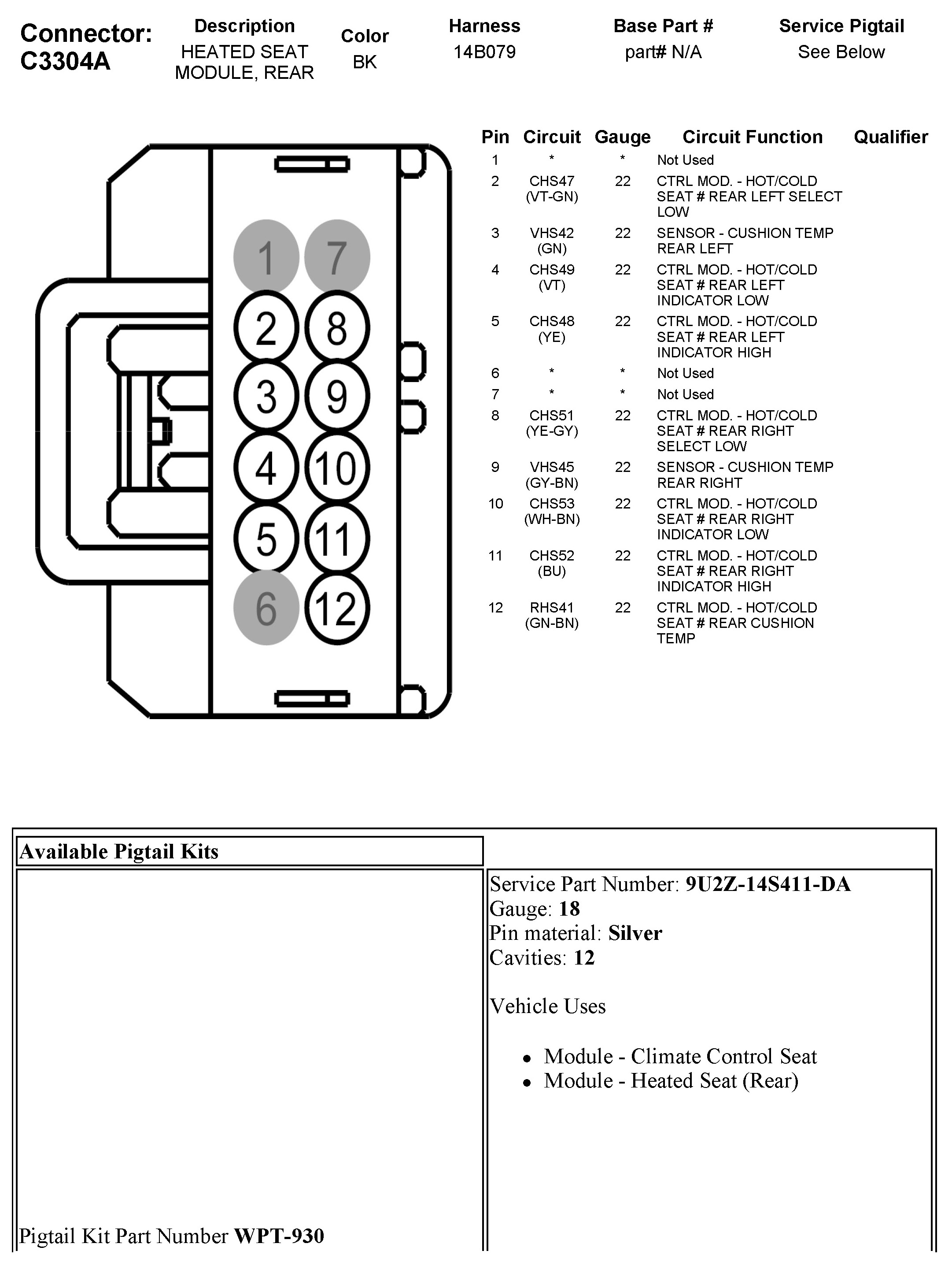 C3304A Heated Seat Module, Rear