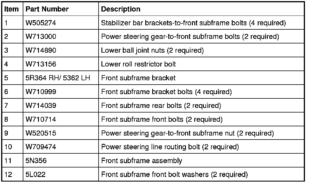Remove and discard the subframe bracket-to-body bolts.