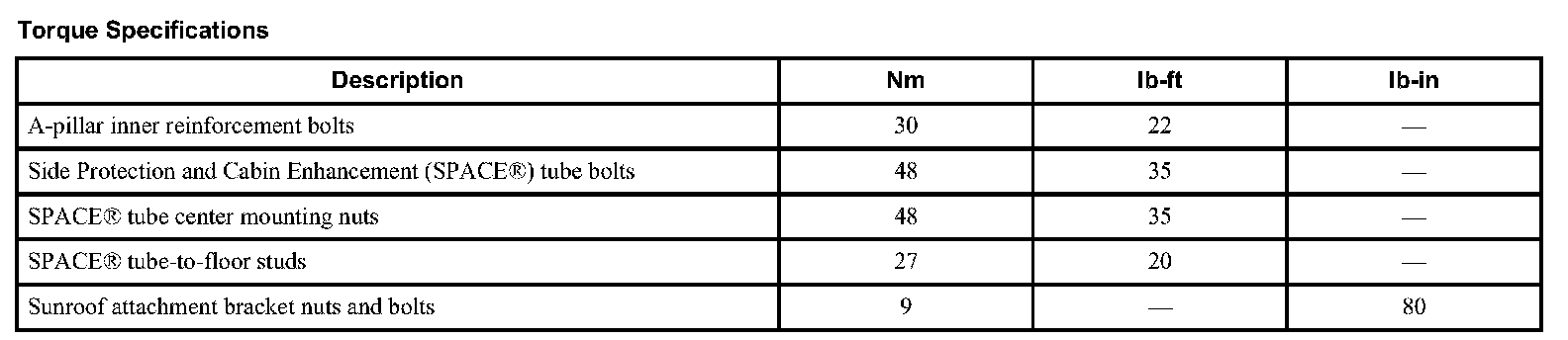 Torque Specifications