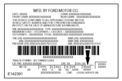 Powertrain calibration information is printed in the lower right corner of the VC label. Only the base calibration information is printed. Revision levels will not appear, however, they can be obtained through a scan tool using the most current software revision.
