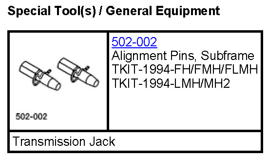 Special Tool(s): 502-002 (Alignment Pins, Subframe)