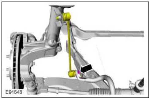 - Use care when releasing the lower arm and wheel knuckle into the resting position or damage to the ball joint seal may occur.