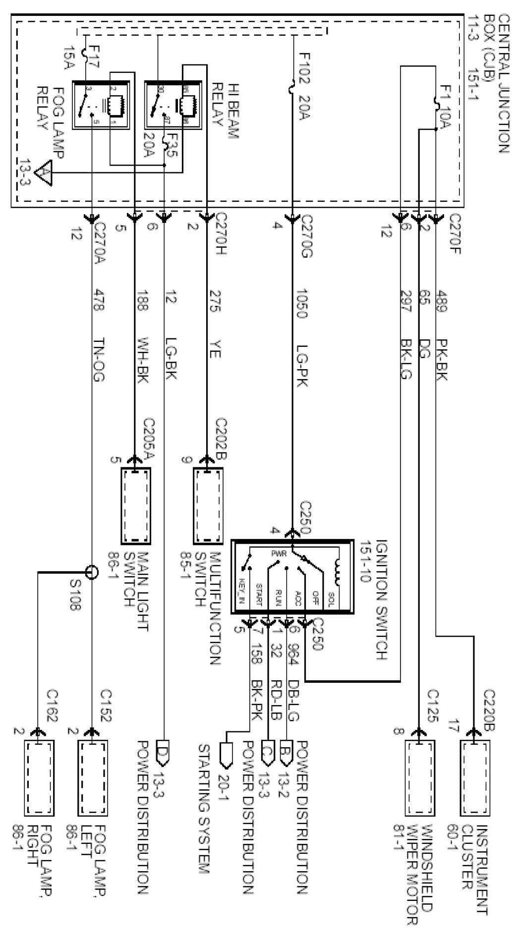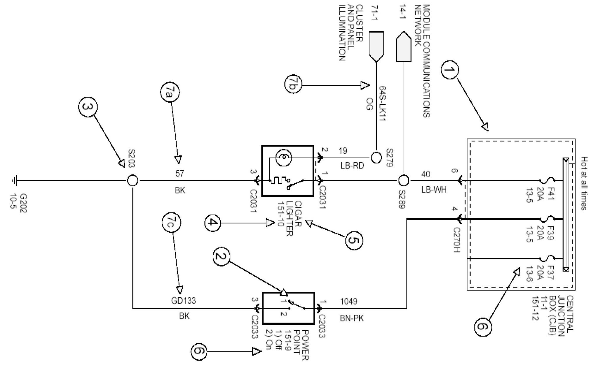 Ford Motor Company uses three different circuit numbering conventions: Standard Circuit Numbering System, Global Circuit Numbering System, and New Global Circuit Numbering System (NGCNS). With each, the circuit number (which identifies a specific circuit function) is followed by the wire color.