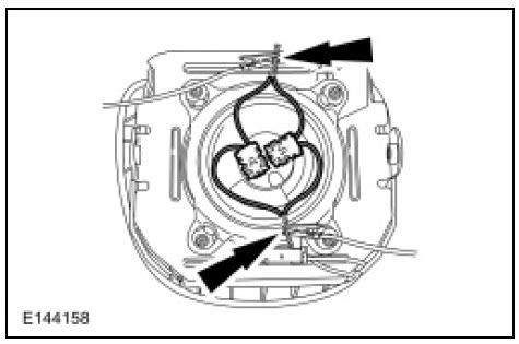 36. Deploy the air bag module by touching the ends of the 2 wires of the jumper harness to the terminals of a 12-volt battery.