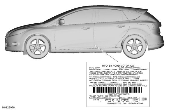 The VC (Vehicle Certification) label contains the manufacturer name, the month and year of manufacture, the certification statement and the VIN (Vehicle Identification Number). It also includes GVWR (Gross Vehicle Weight Rating) and tire information.