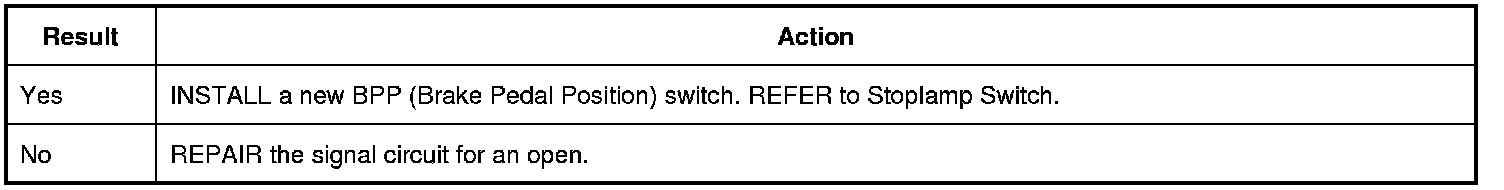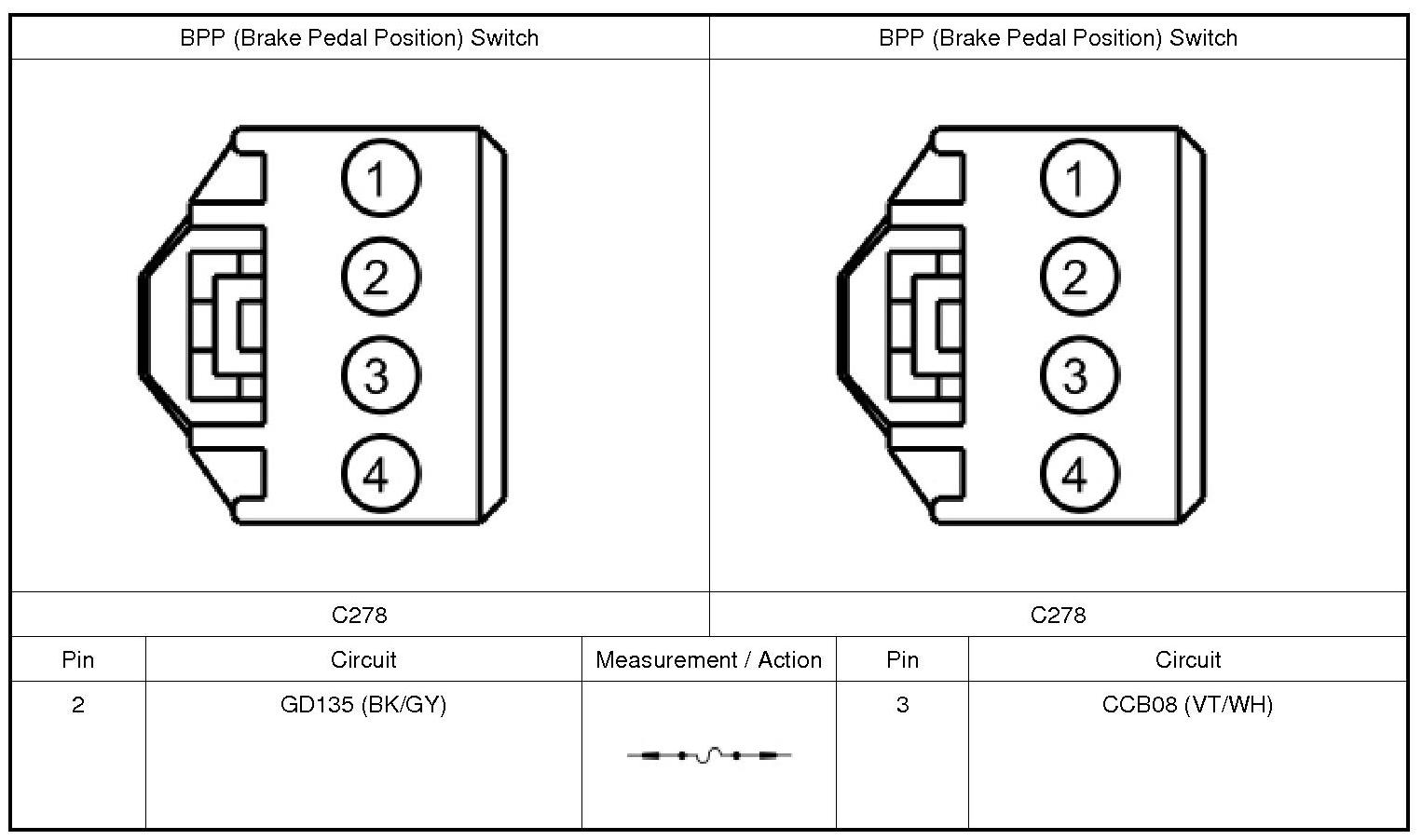 2. Using the table, monitor the PIDs (Parameter Identifications) BOO1 (stoplamp switch) and BOO2 (cruise control deactivator switch) while applying and releasing the brake pedal.
