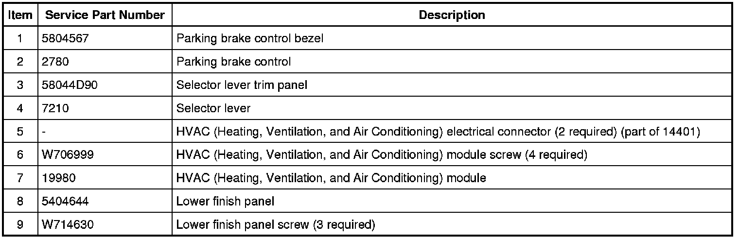 8. Remove the 3 lower finish panel screws, disconnect the 2 HVAC (Heating, Ventilation, and Air Conditioning) electrical connectors remove the lower finish panel. Remove the 4 HVAC (Heating, Ventilation, and Air Conditioning) module screws and remove the HVAC (Heating, Ventilation, and Air Conditioning) module.