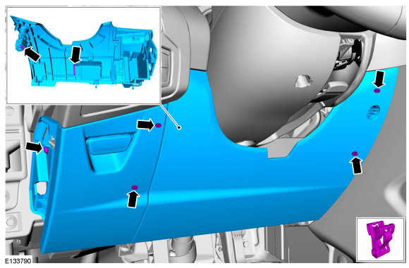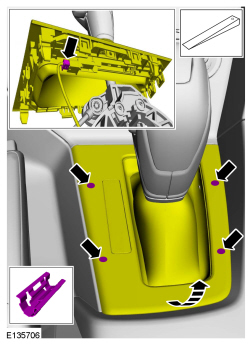 4. Remove the LH (Left Hand) floor console side trim panel retainer and remove the LH (Left Hand) floor console side trim panel.