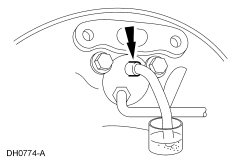 Loosen the bleeder screw until a stream of brake fluid comes out. While the assistant maintains pressure on the brake pedal, tighten the bleeder screw.
