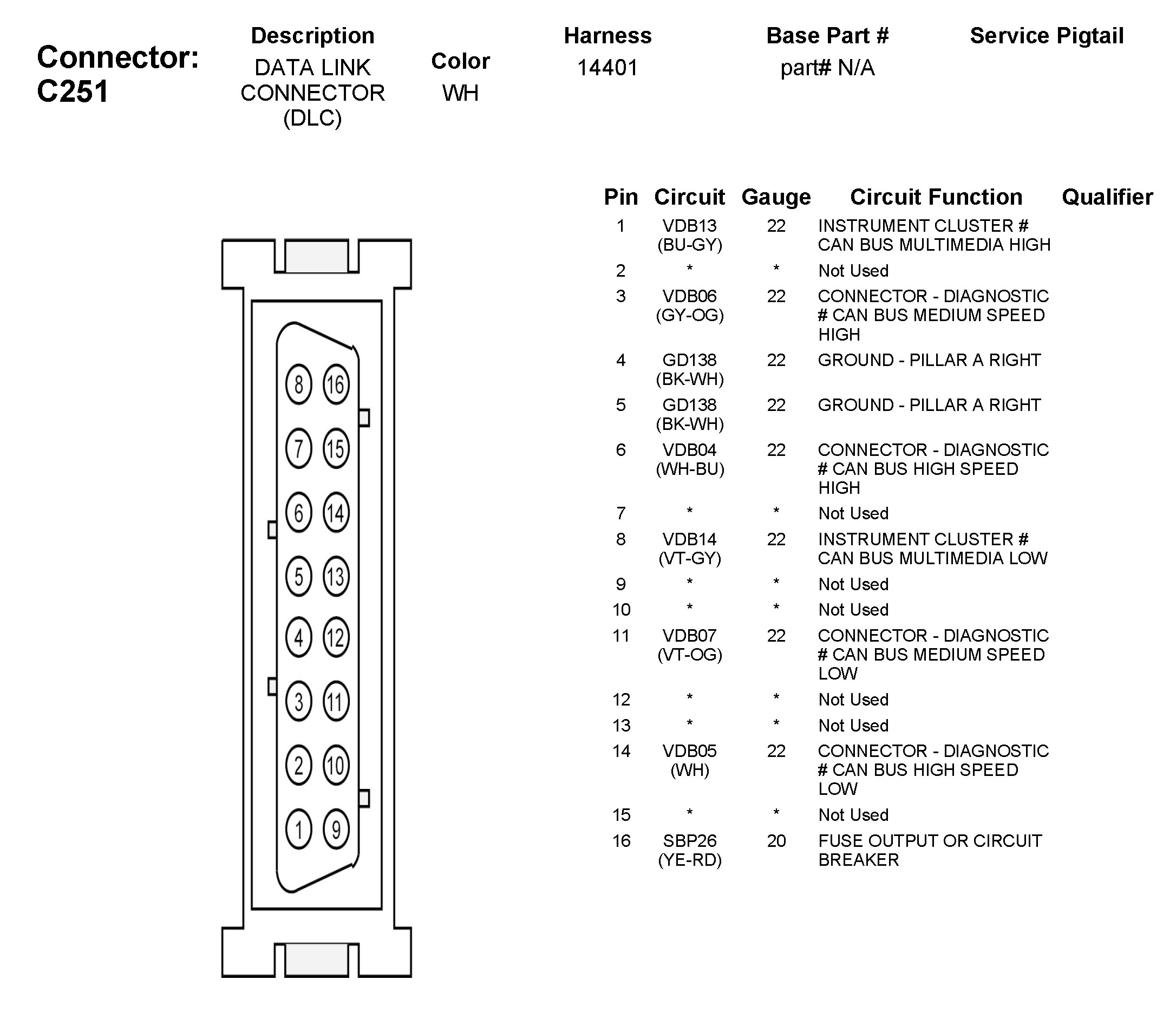 Data Link Connector: Diagrams