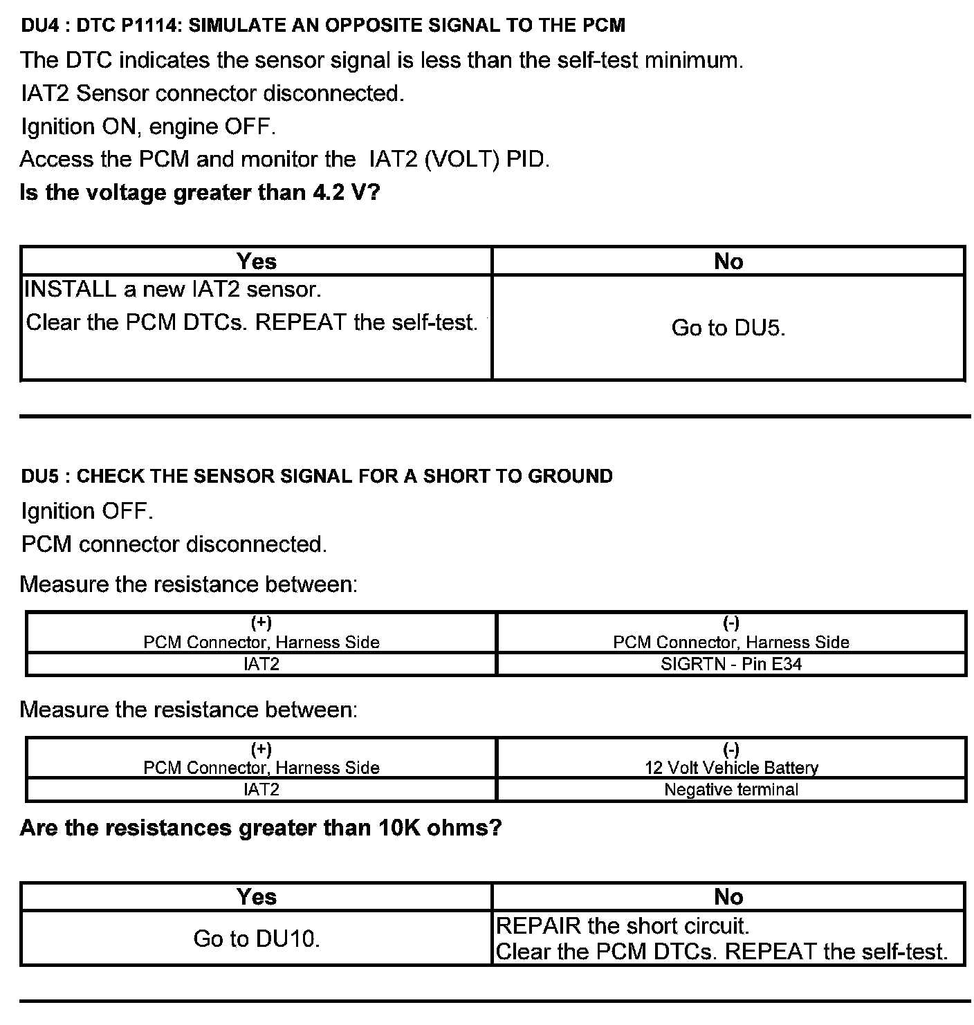 Test DU: Intake Air Temperature 2 (IAT2) Sensor