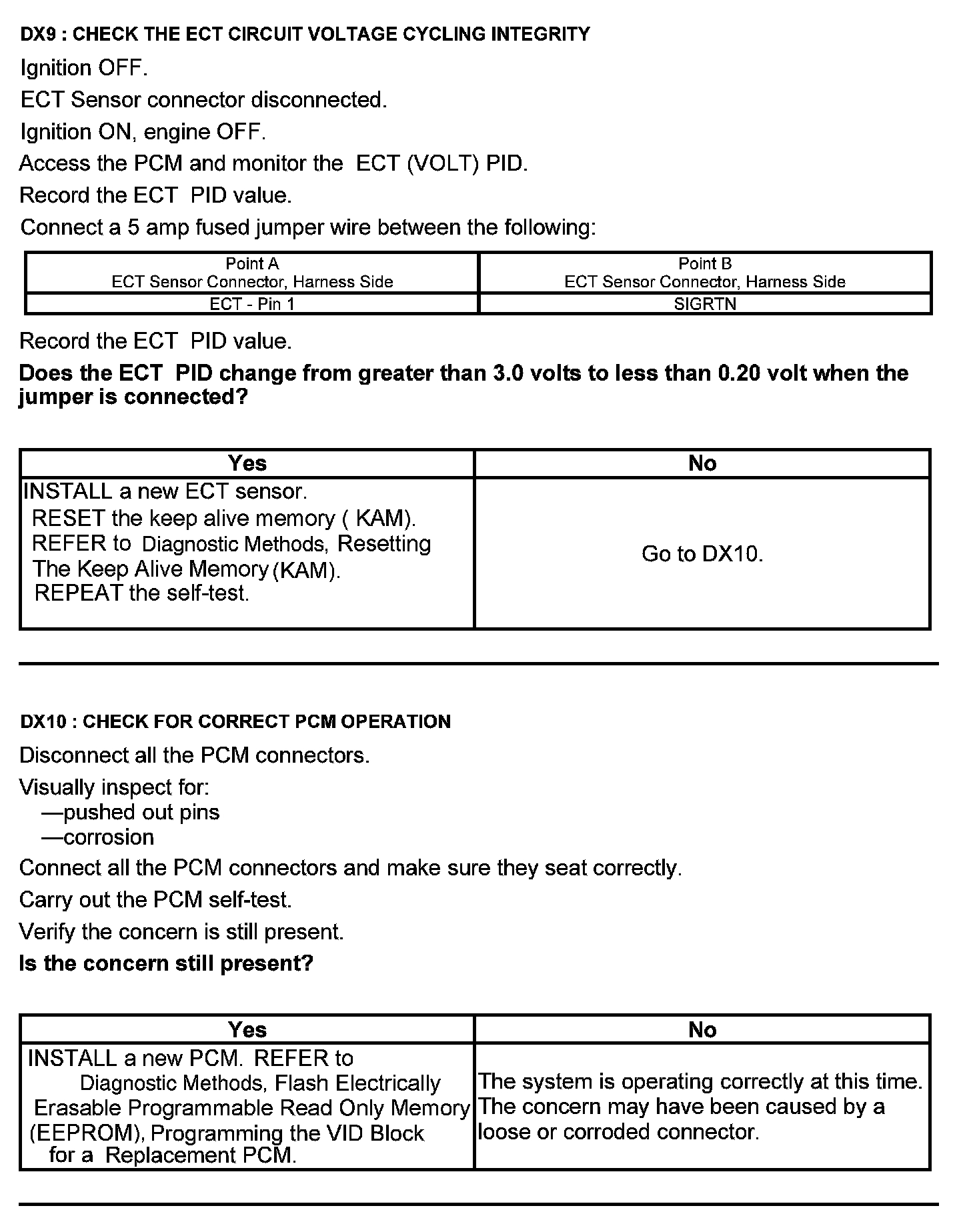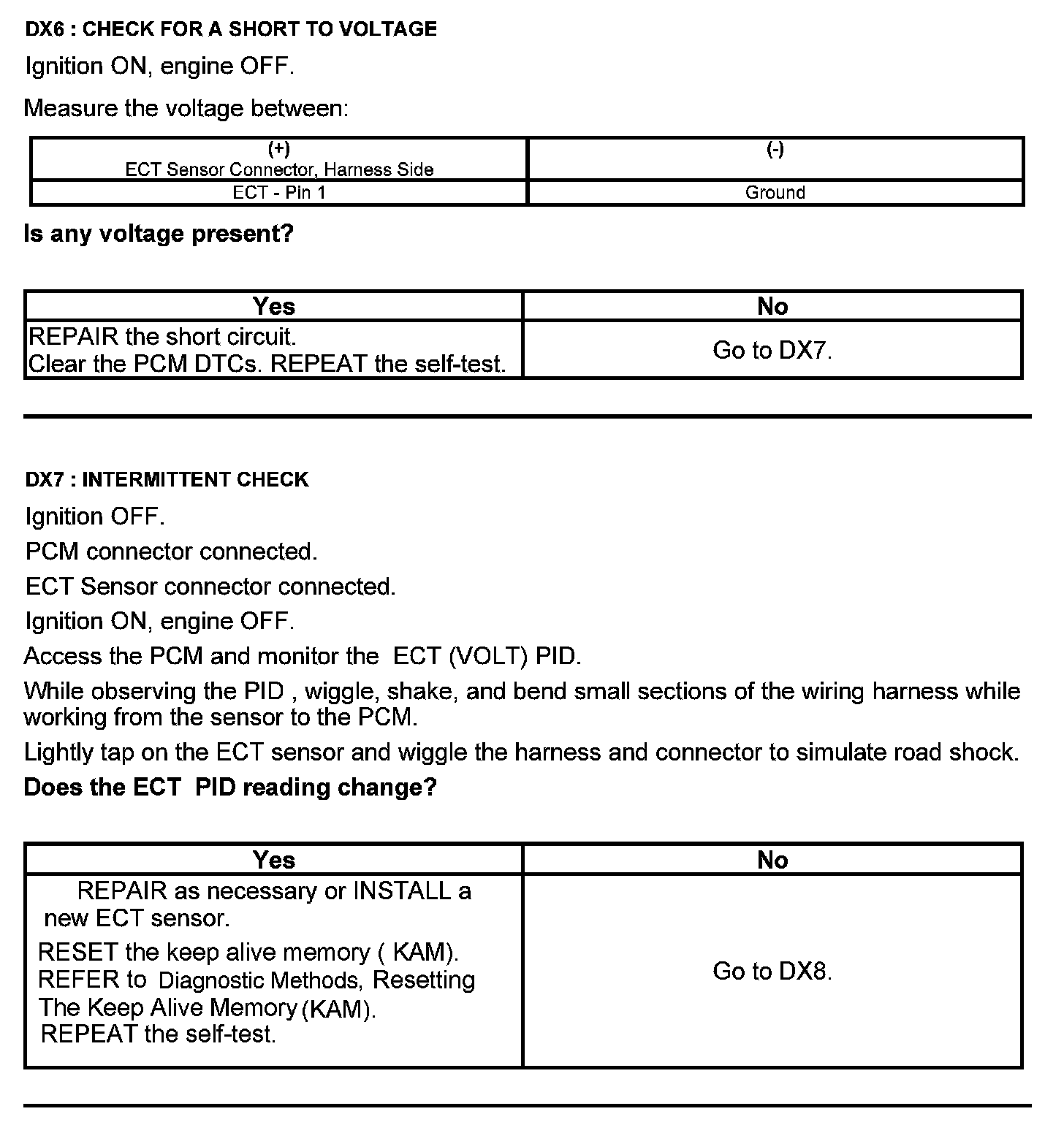 Test DX: Engine Coolant Temperature (ECT) Sensor