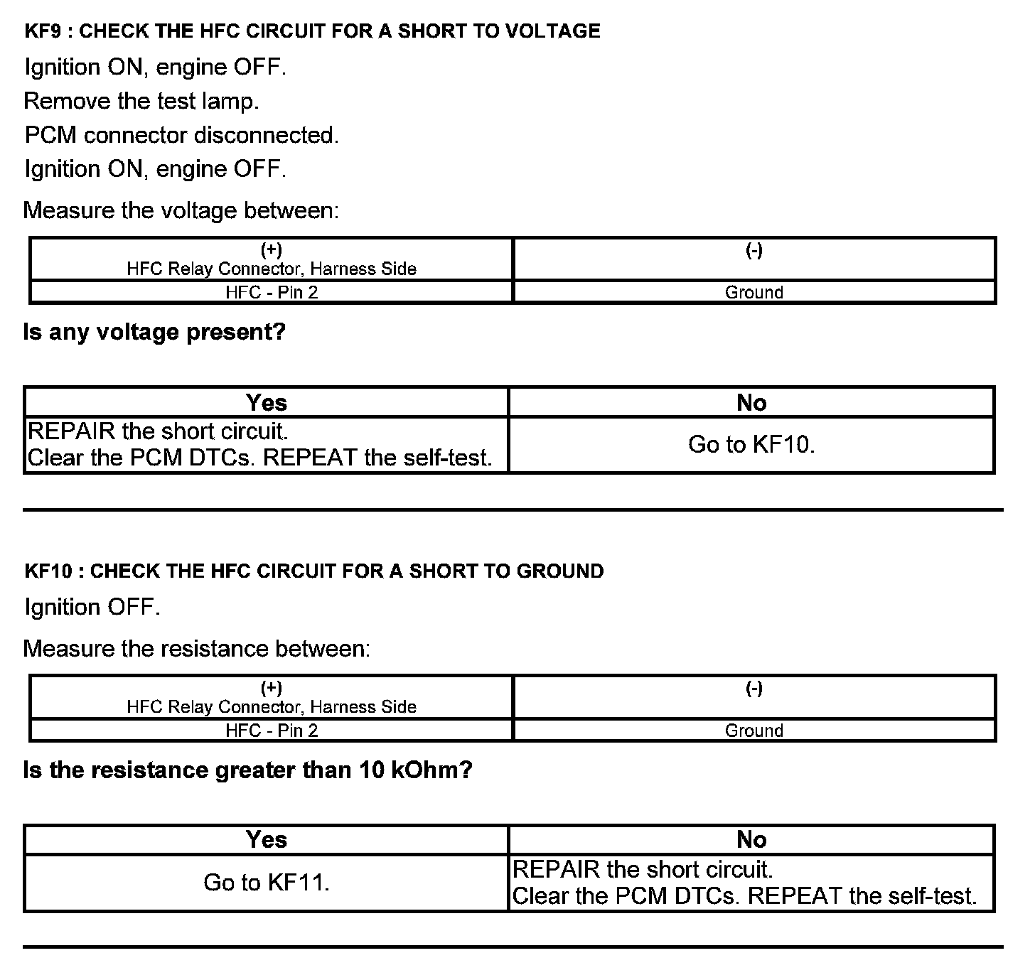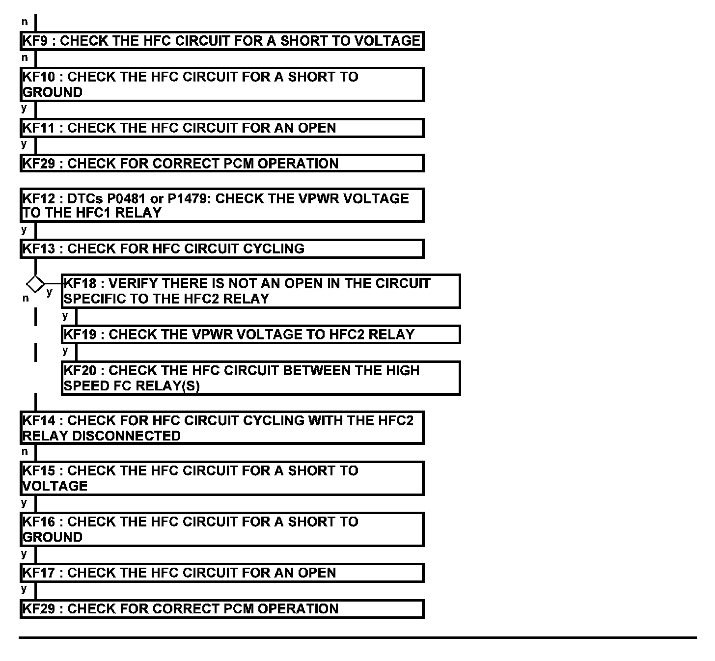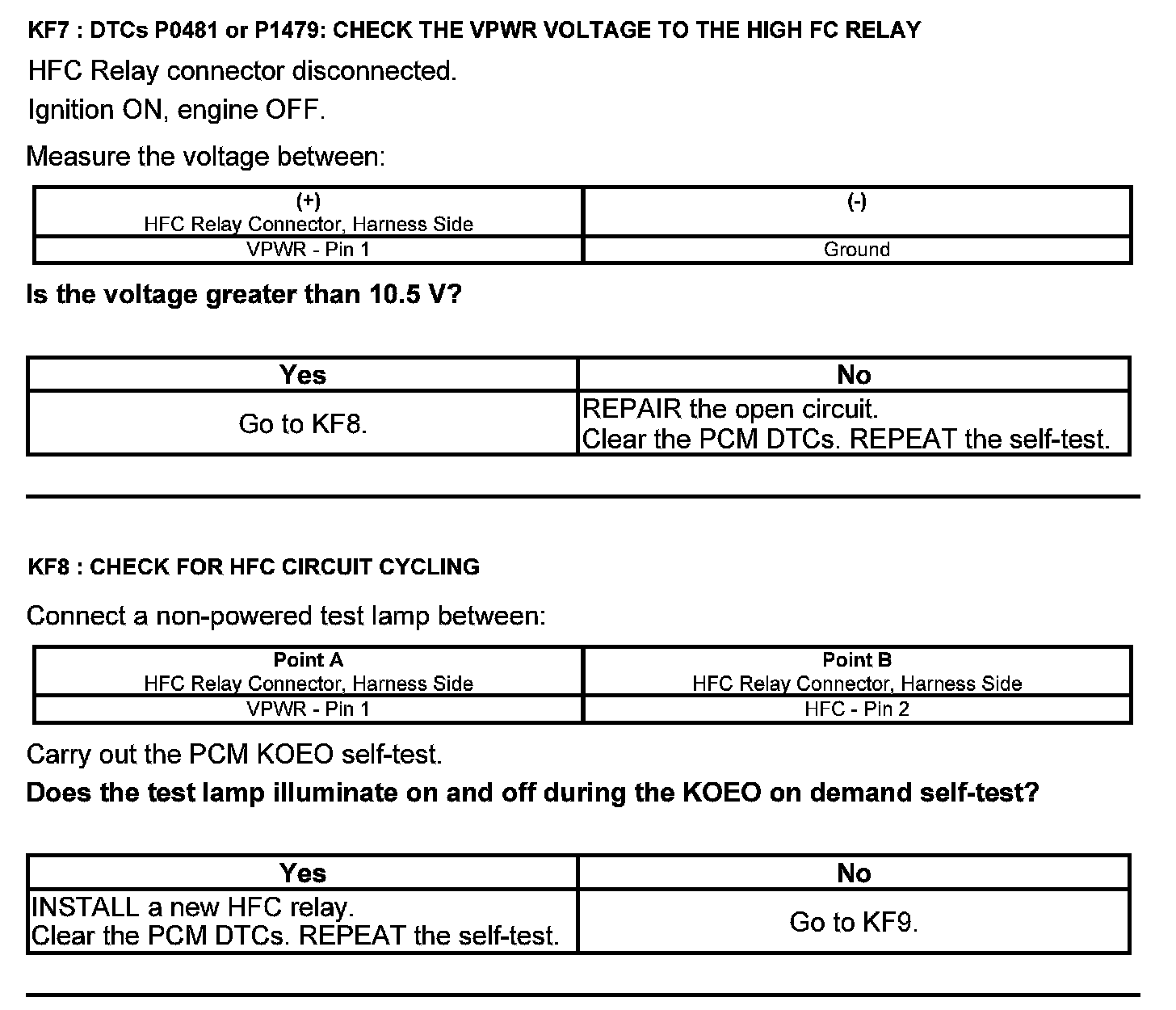 Home >> Ford >> 2012 >> Focus L4-2.0L >> Repair and Diagnosis >> Powertrain Management >> Computers and Control Systems >> Testing and Inspection >> Pinpoint Tests >> Test KF: Fan Control Relays