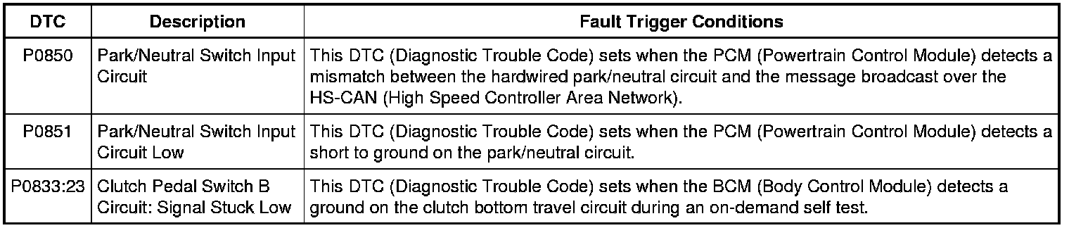 - Inspect the CPP (Clutch Pedal Position) switch (manual transmission only).