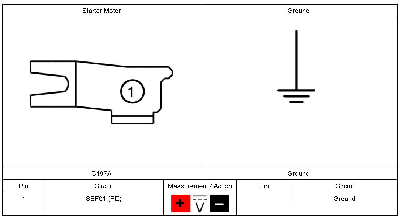 When the start/stop switch is pressed in combination with the brake or clutch pedal (depending upon transmission), the RFA (Remote Function Actuator) module, BCM (Body Control Module) and PCM (Powertrain Control Module) receive signals to crank and start the engine. The PCM (Powertrain Control Module) and BCM (Body Control Module) receive notification from the TCM (Transmission Control Module) that the vehicle is in PARK or NEUTRAL (vehicles equipped with an automatic transmission) or from the Clutch Pedal Position (CPP) switch when the clutch pedal is fully applied (vehicles equipped with manual transmission). The PCM (Powertrain Control Module) supplies voltage and ground to the starter relay coil. The energized coil causes the starter relay contacts to close. This allows voltage to be supplied from the BJB (Battery Junction Box) to the starter solenoid coil. The starter solenoid coil is grounded at the starter motor. Energizing the starter solenoid closes the solenoid contacts allowing voltage directly from the battery to the starter motor, engaging the starter drive into the ring gear causing the engine to crank. The PCM (Powertrain Control Module) disengages the starter motor once an engine RPM (Revolutions Per Minute) threshold is reached, a set crank time is exceeded or the start/stop switch is pressed indicating an engine shutdown.