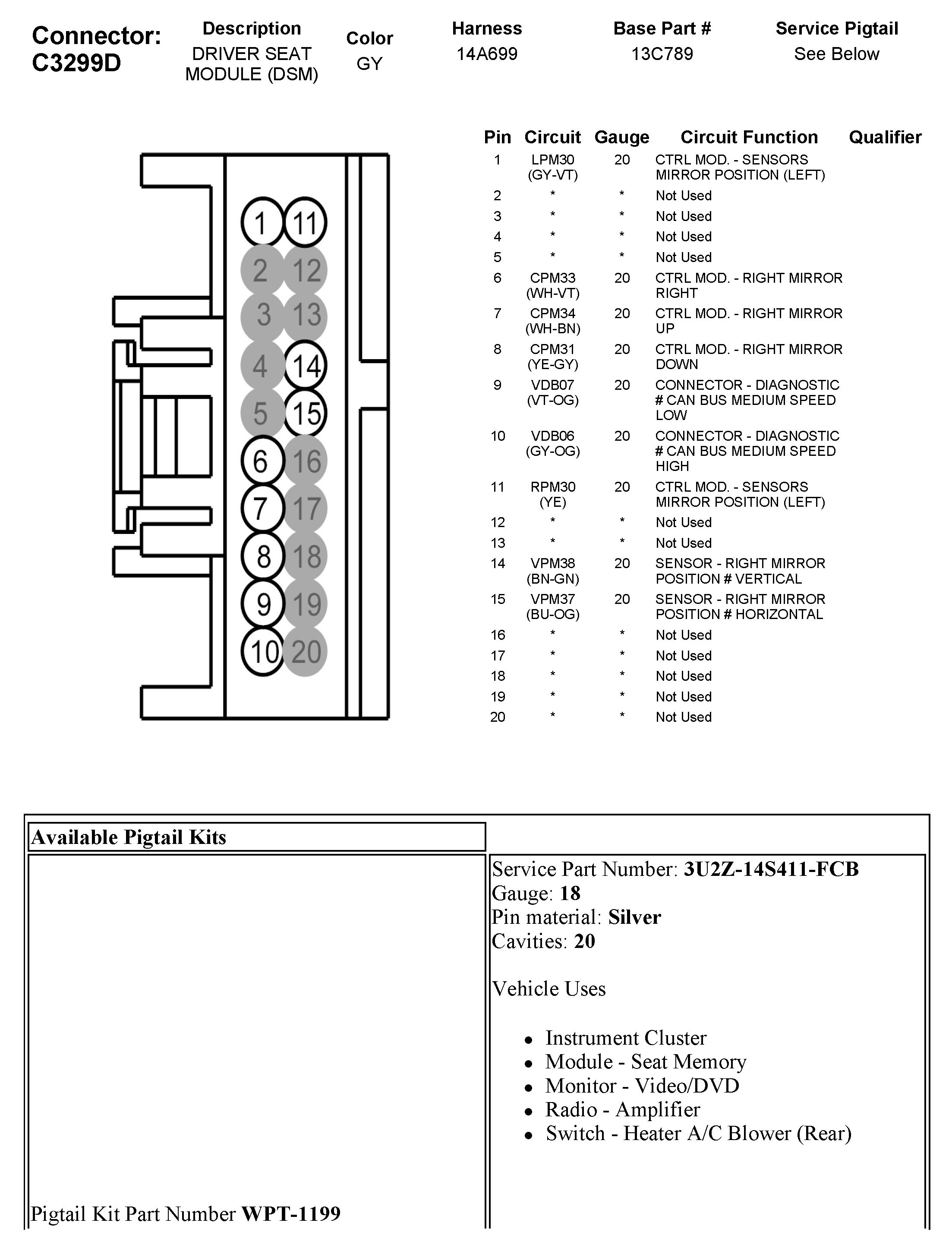 C3299D Driver Seat Module (DSM)