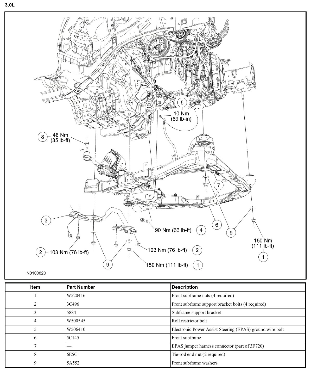 1. Tighten to 110 Nm (81 lb-ft).