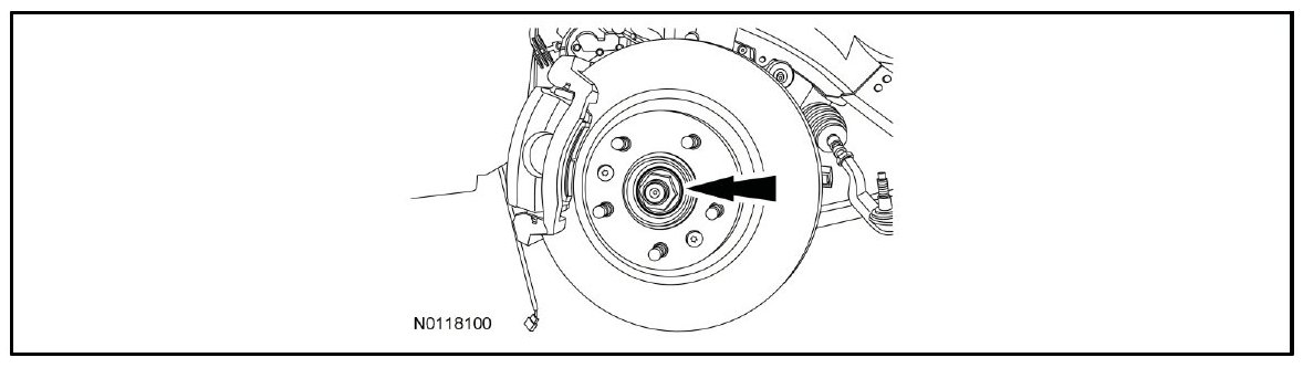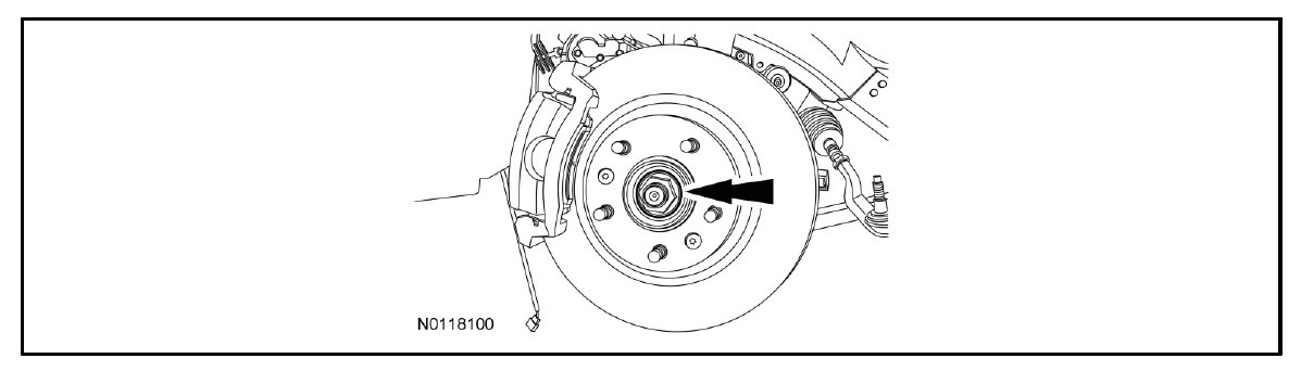 9. NOTICE: Do not tighten the halfshaft nuts with the vehicle on the ground. The nuts must be tightened to specification before the vehicle Is lowered onto the wheels. Wheel bearing damage will occur If the wheel bearing Is loaded with the weight of the vehicle applied.
